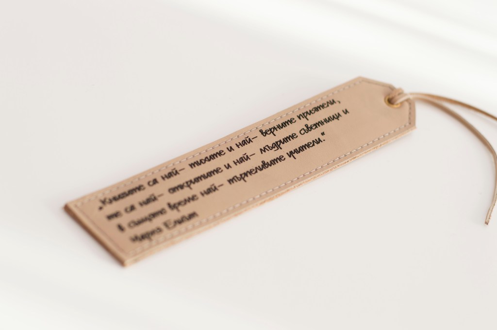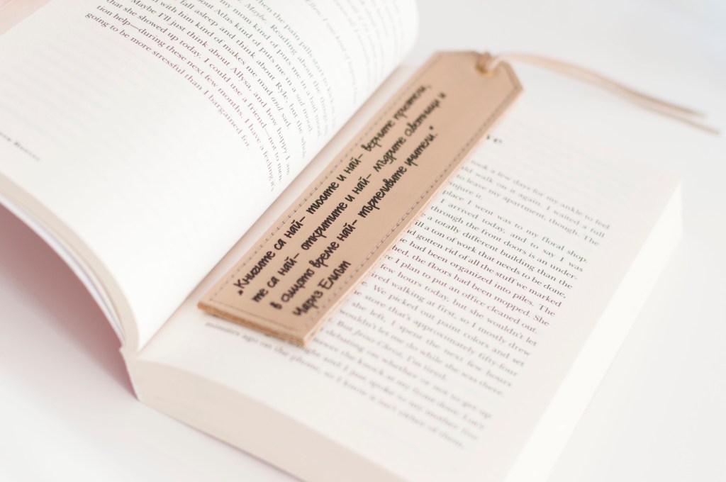 Персонализиран кожен книгоразделител, лазерно гравиран.