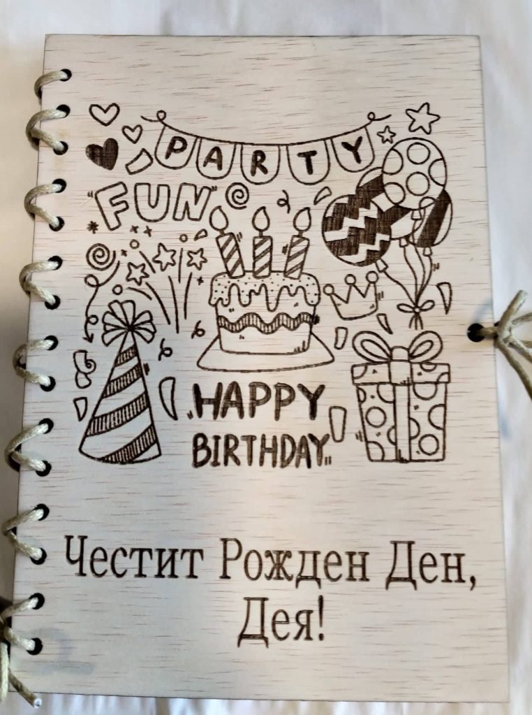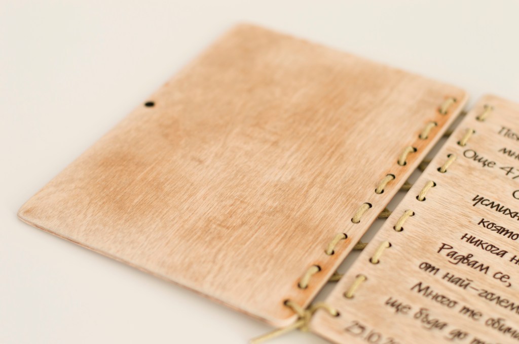 Персонализиран дървена картичка, лазерно гравирана.