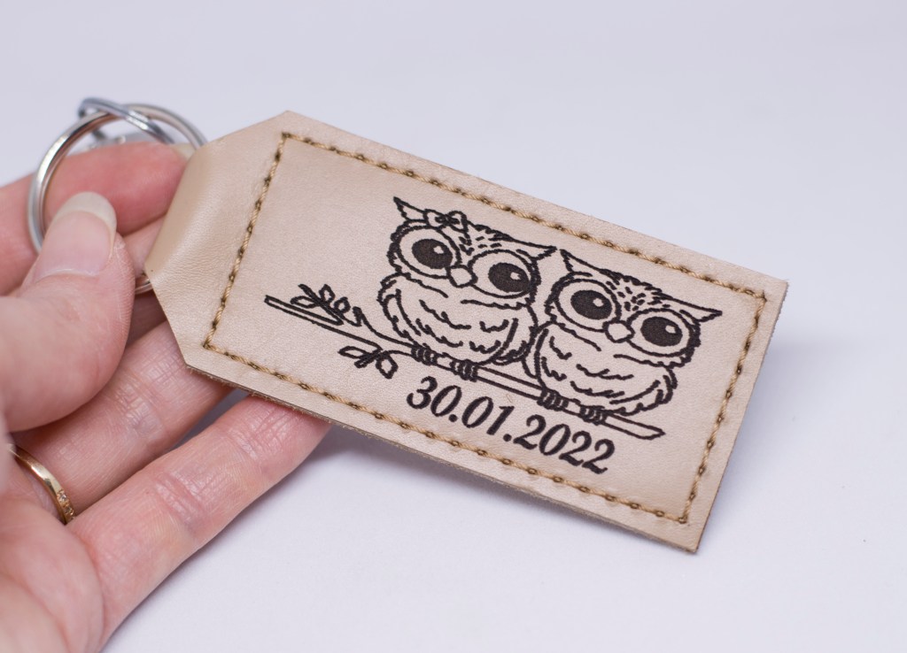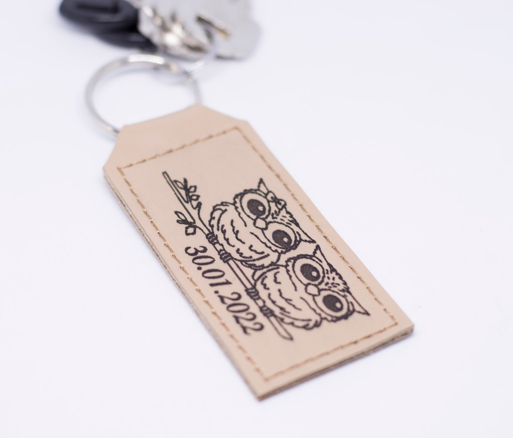 Персонализиран кожен ключодържател, лазерно гравиран.