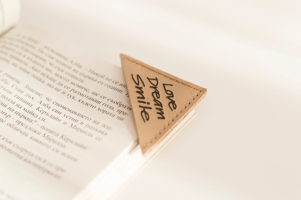 Персонализиран кожен мини (ъглов) книгоразделител, лазерно гравиран.
