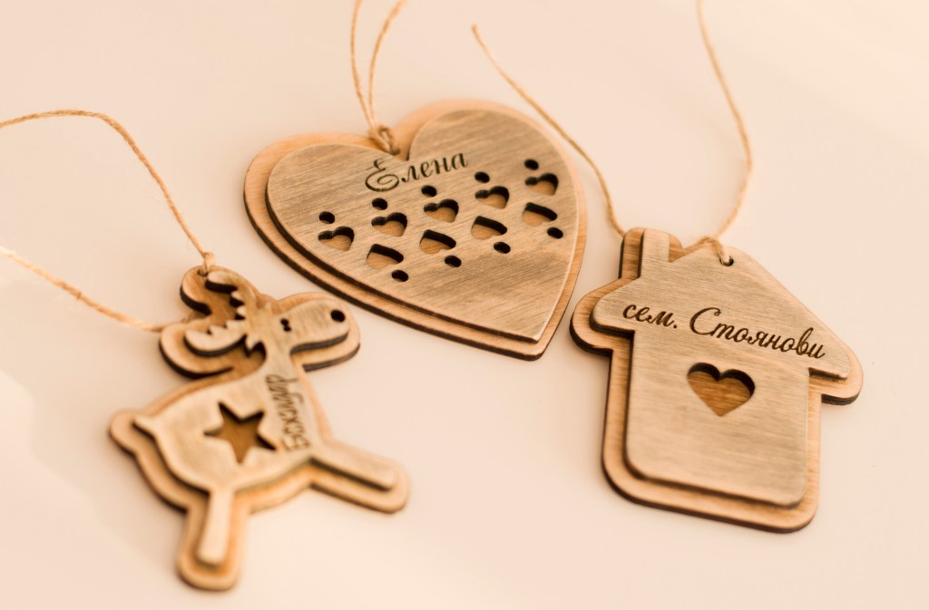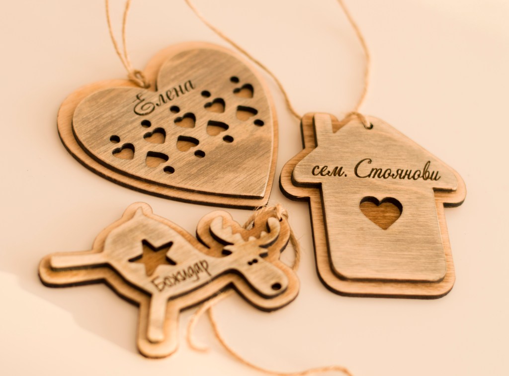 Комплект персонализирани Коледни играчки, лазерно гравирани.
