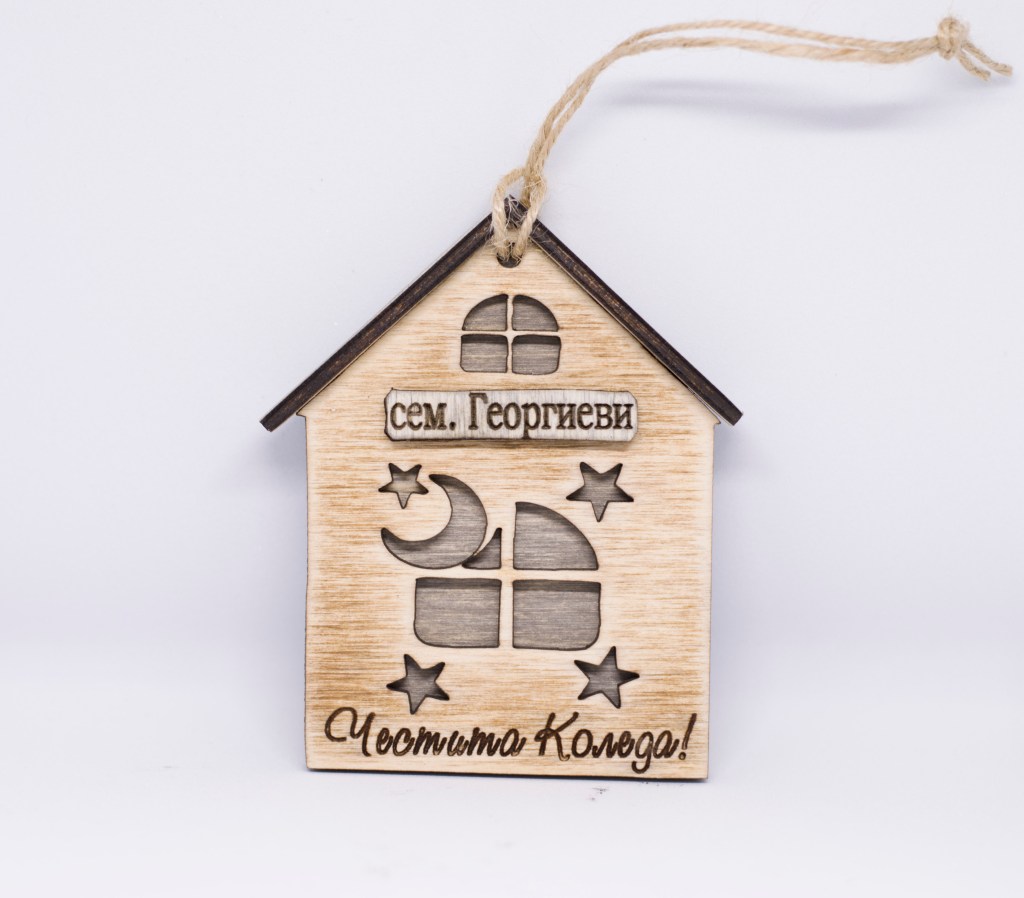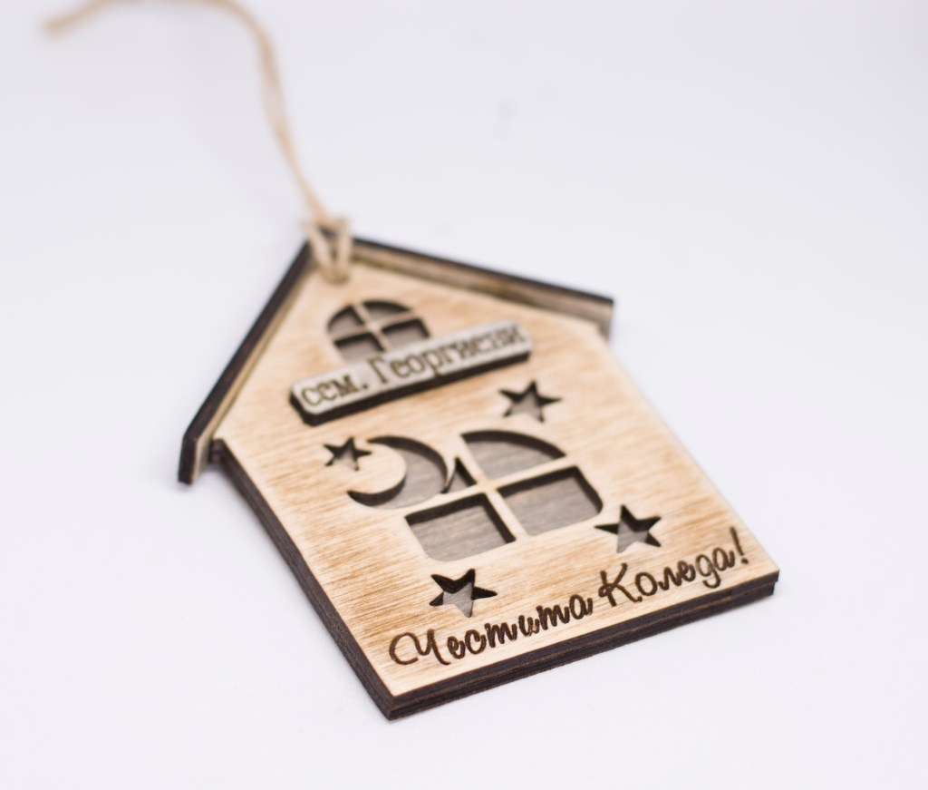 Красиво допълнение към коледната ви украса. Първата Коледна играчка на вашето дете. Играчката може да бъде гравирана с текст по ваше желание, с шрифт по избор. Цвета на панделката е по избор.