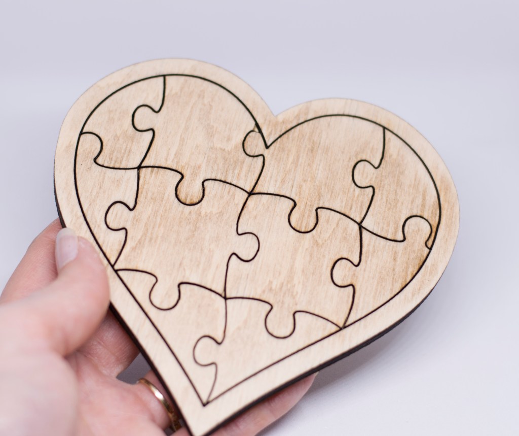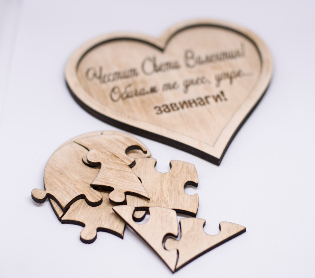 Оригинален подарък за любимия човек. Пъзелът може да бъде гравиран и отгоре (върху частите на пъзела) с текст по ваше желание, с шрифт по избор. Може да се персонализира с имена или текст по ваш избор.