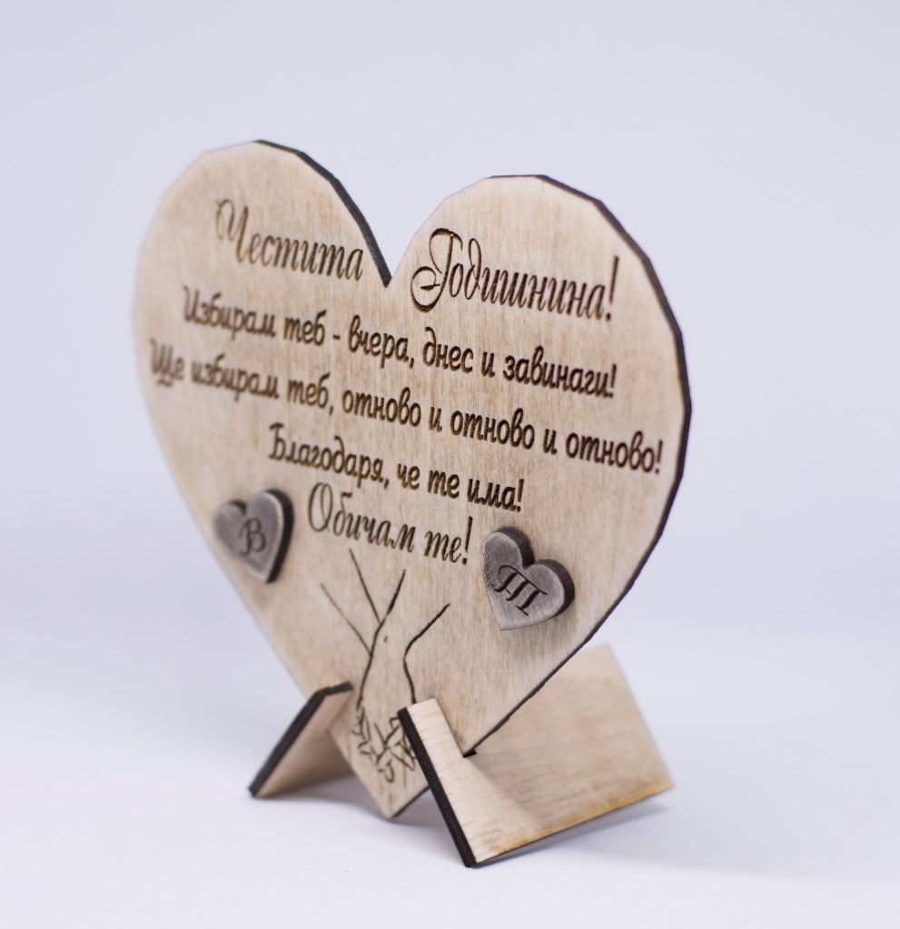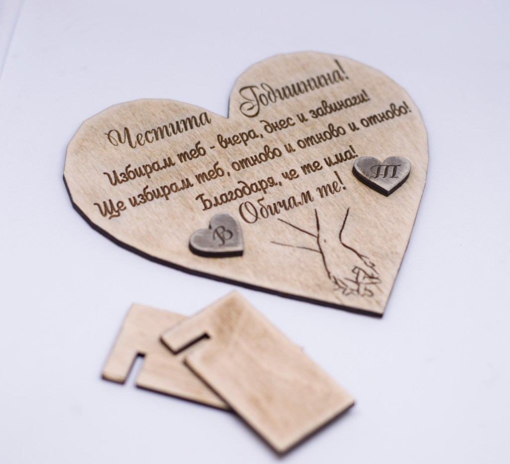 Cute gift for Valentine’s day, anniversary and similar occasion. The plaque can be engraved with a text at your request, you can choose the font.