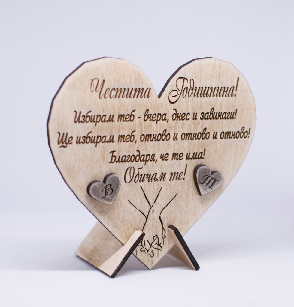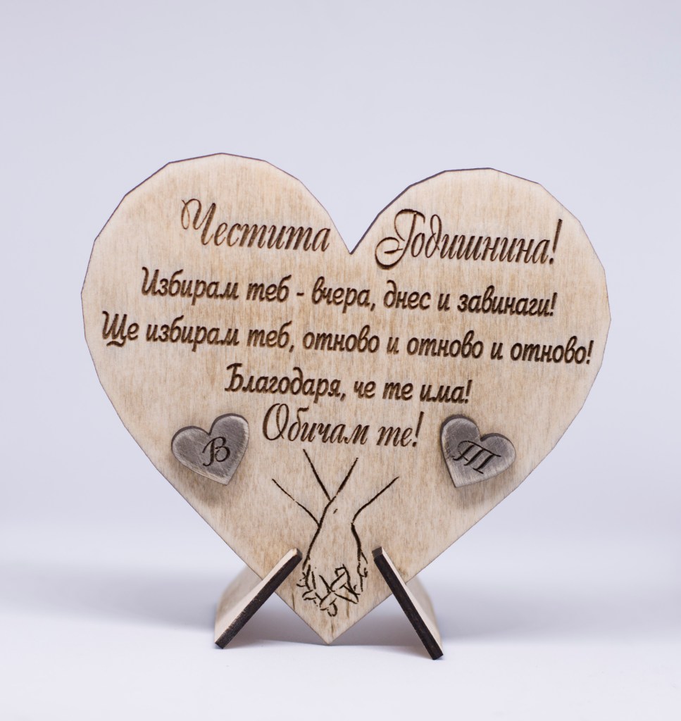 Симпатичен подарък подходящ за Свети Валентин, годишнина и подобни поводи. Табелката може да бъде гравирана с текст по ваше желание, с шрифт по избор.