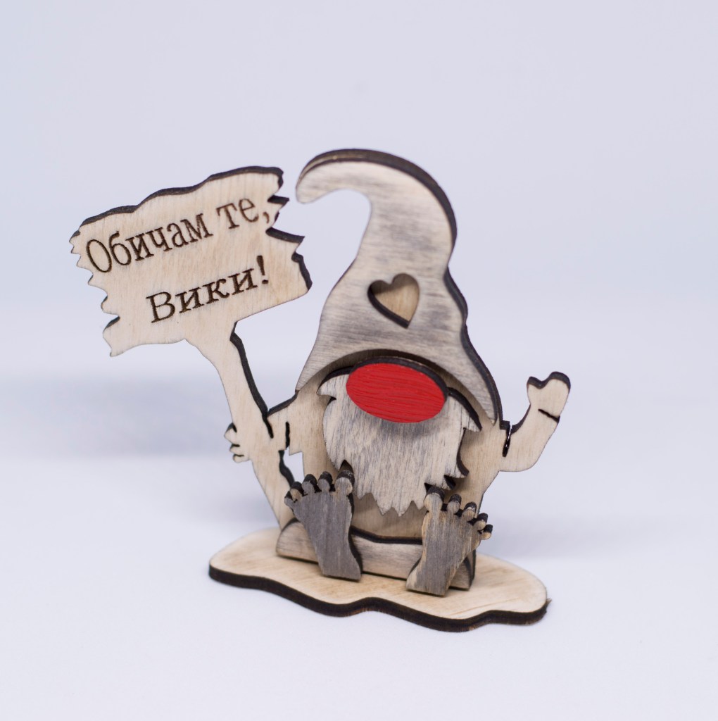 Персонализиранo влюбено гномче, лазерно гравирано.
