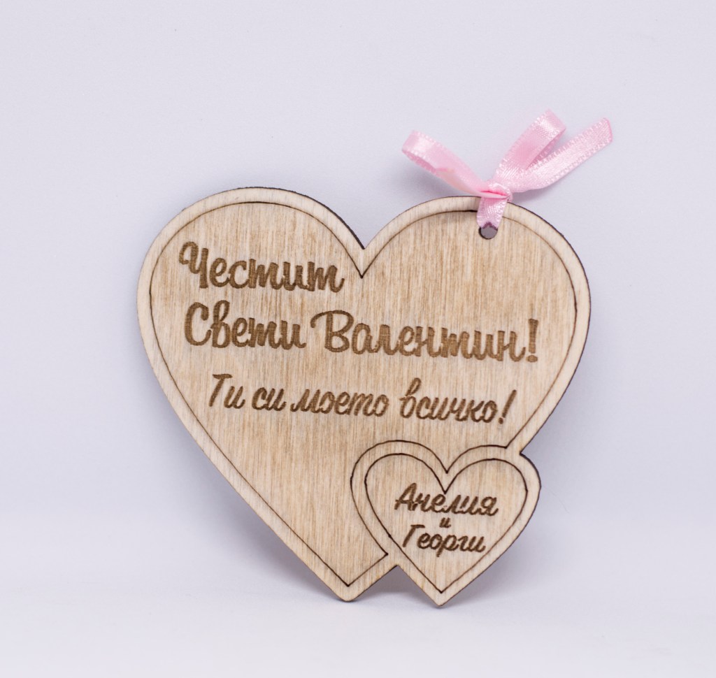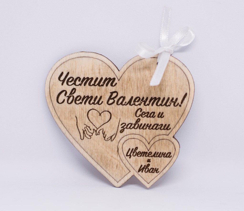 Дървени магнитчета за Свети Валентин, лазерно гравирани.