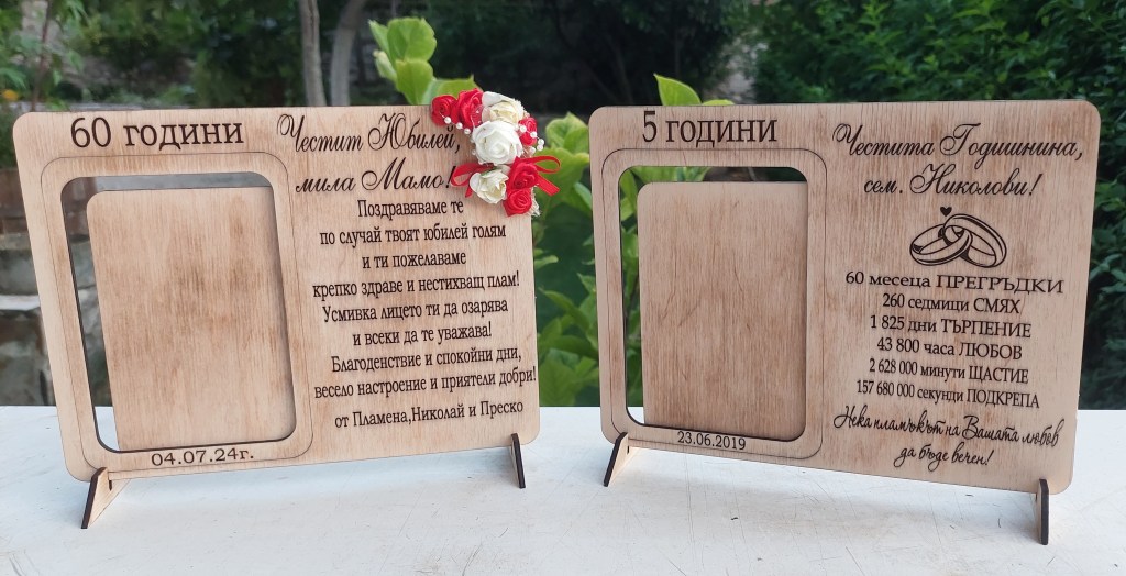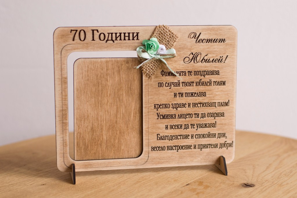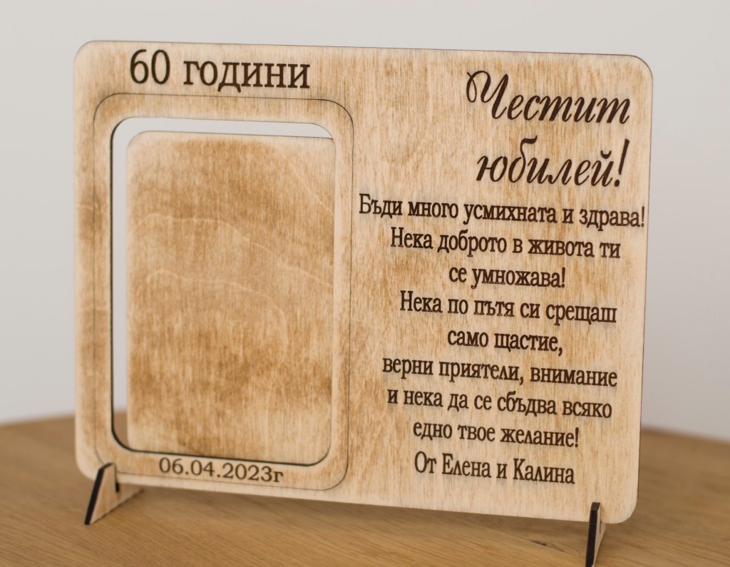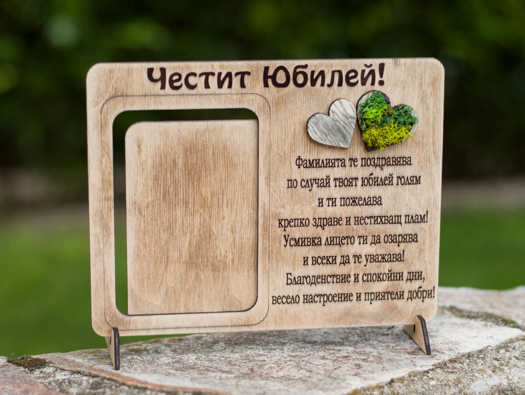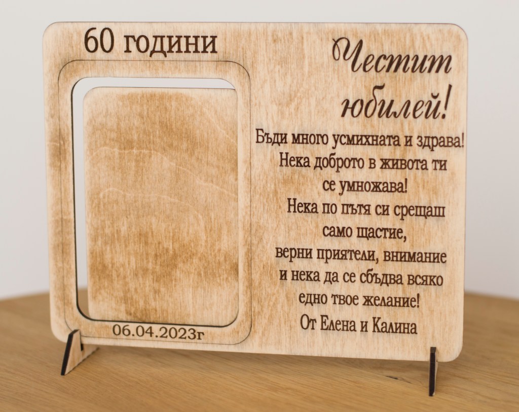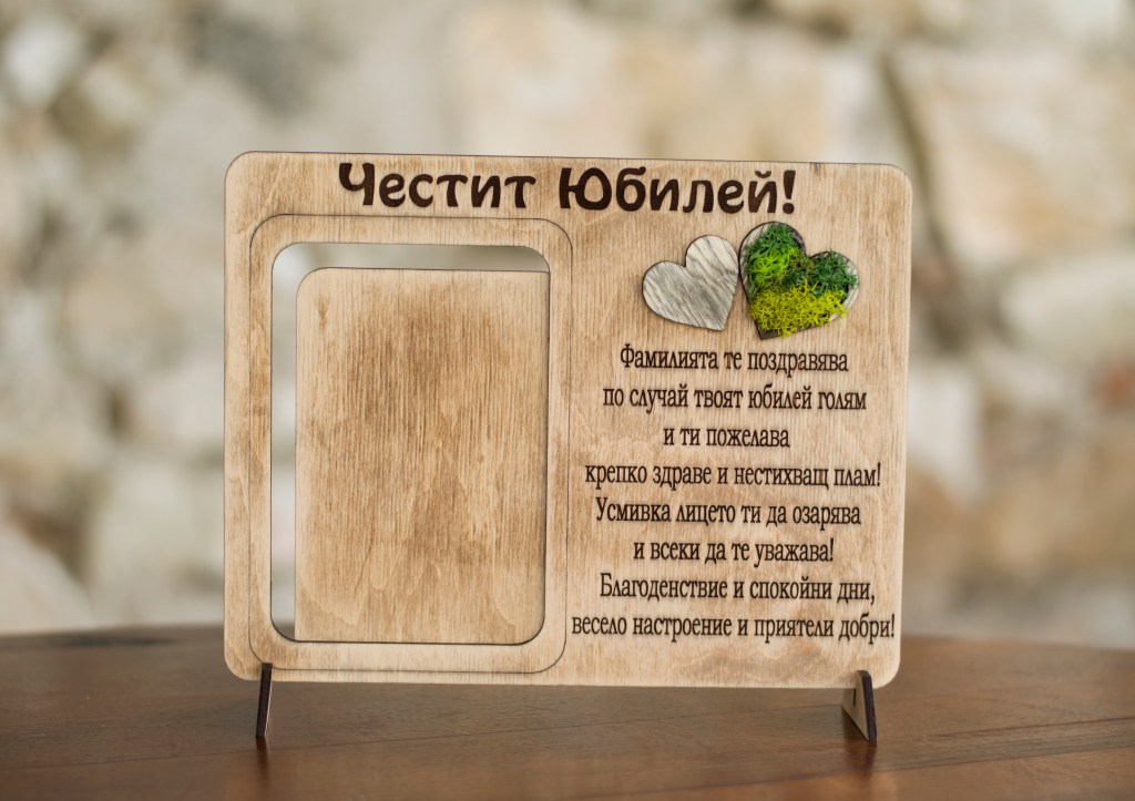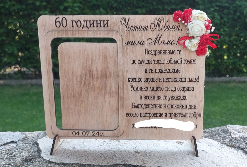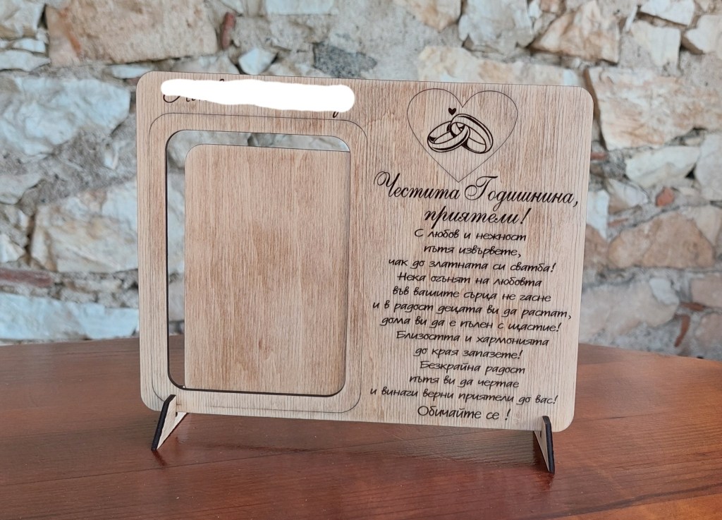 Дървена персонализирана рамка за снимка с послание, лазерно гравирана.