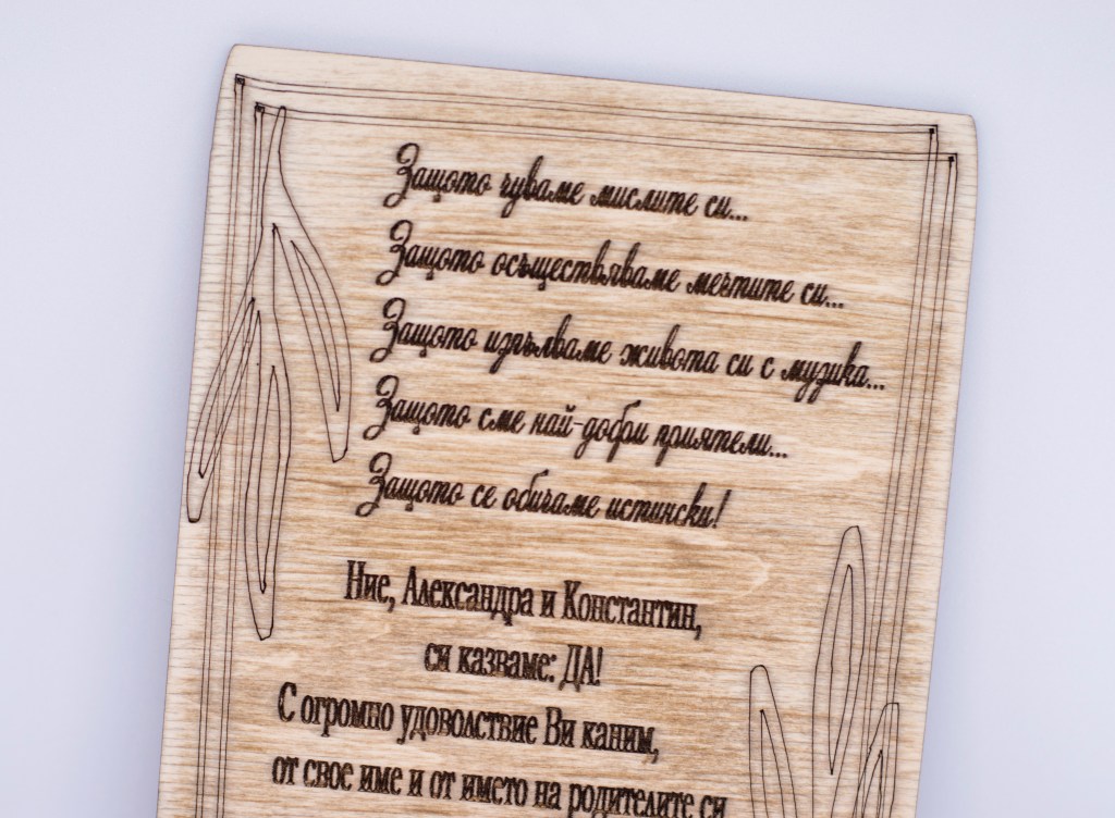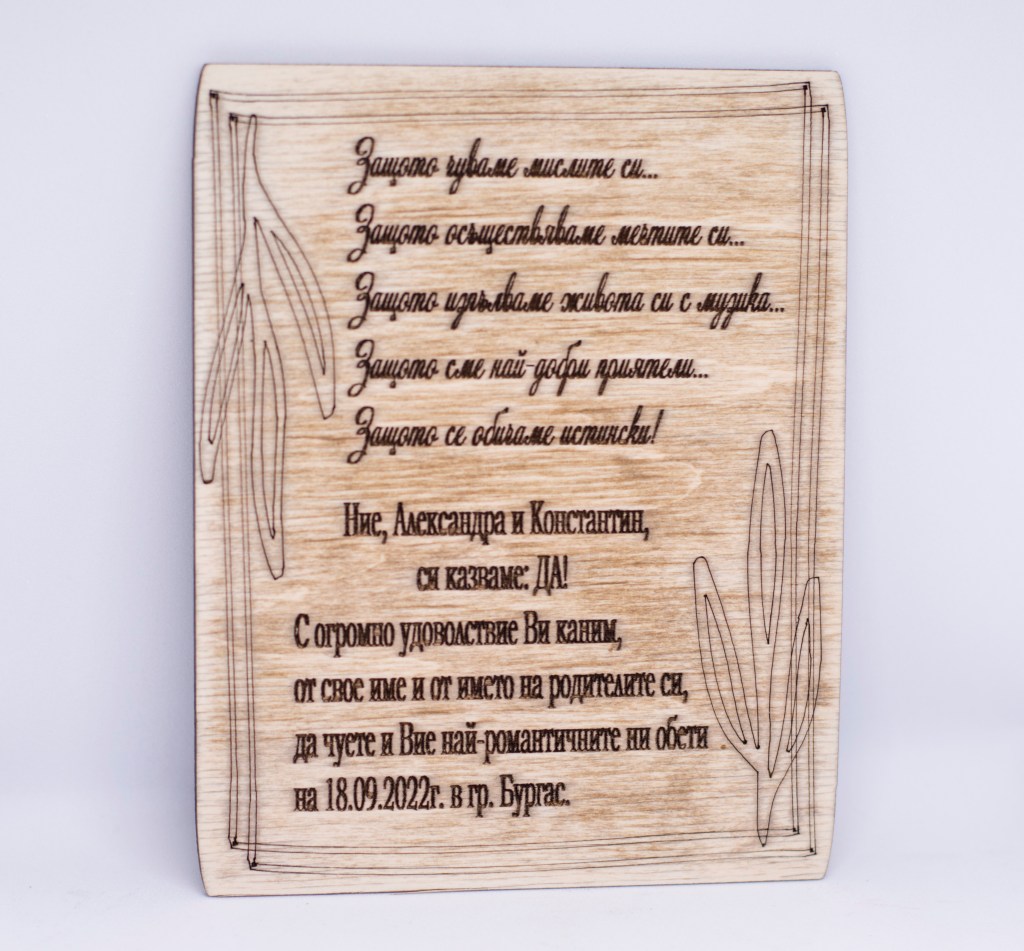Гравирана покана за вашите гости, гравира се с текст по избор.