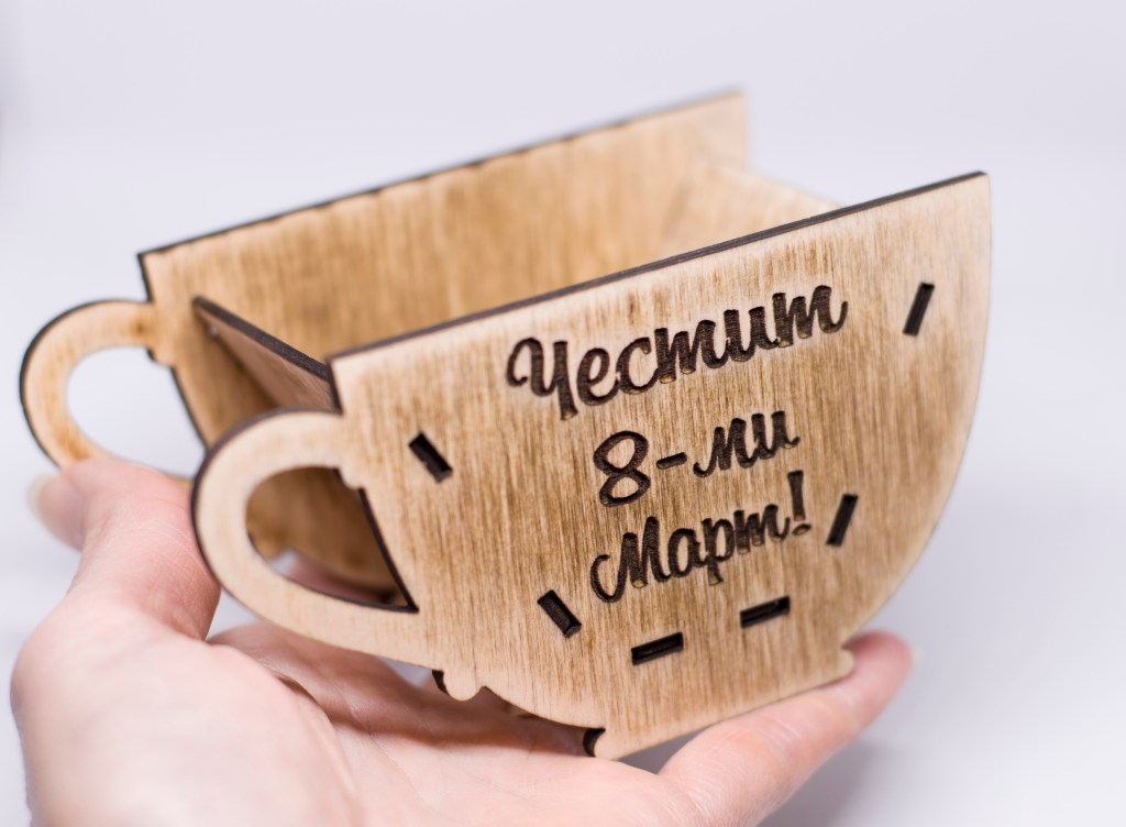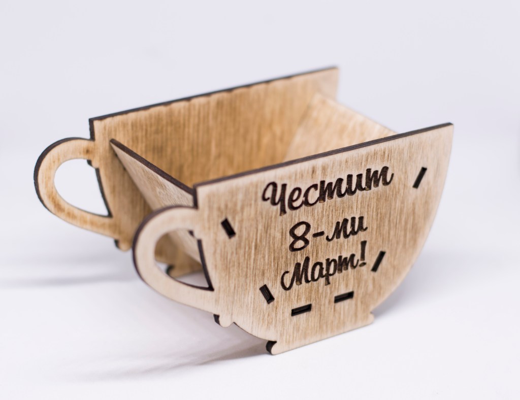 Дървена декорация чаша, лазерно гравирана.