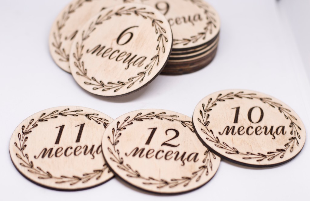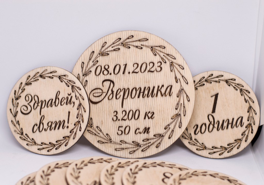 Персонализирани дървени месечинки за бебе, лазерно гравирани.