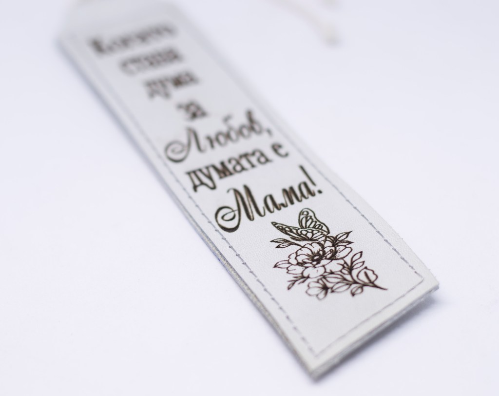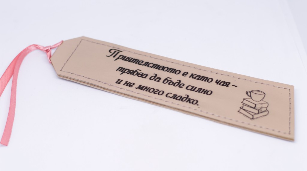 Персонализиран кожен книгоразделител, лазерно гравиран.
