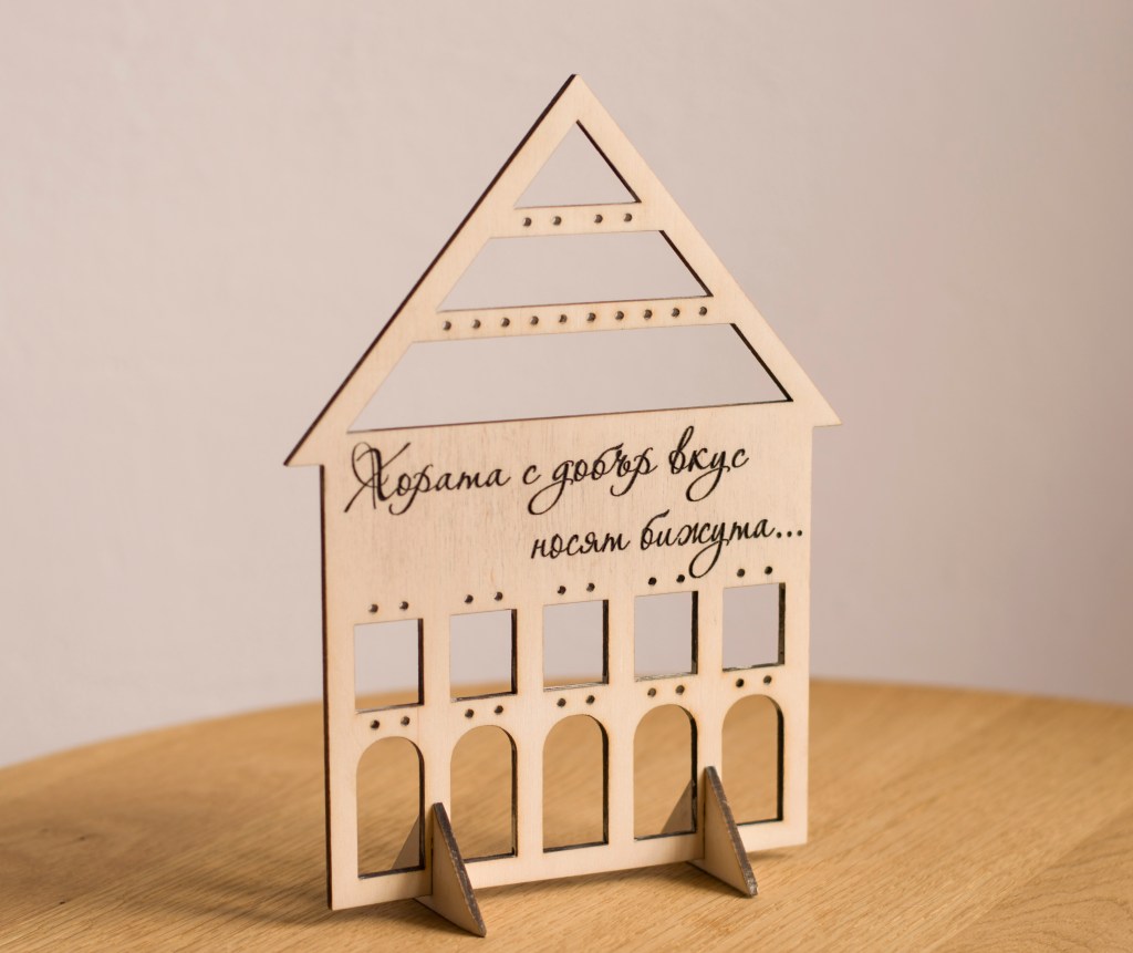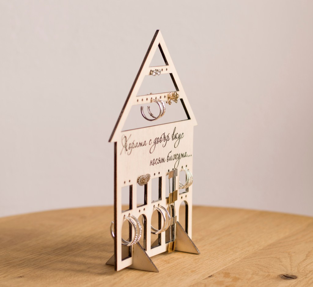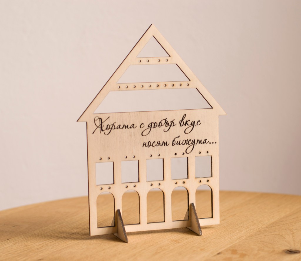 Дървен персонализиран органайзер къщичка за бижута, лазерно гравиран.