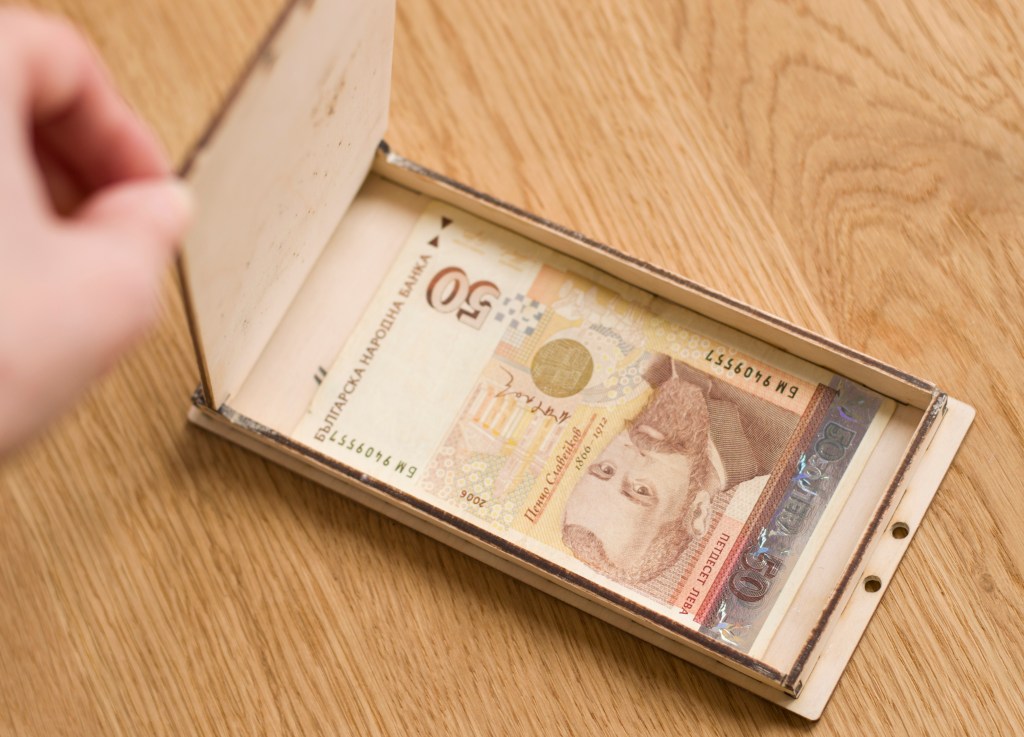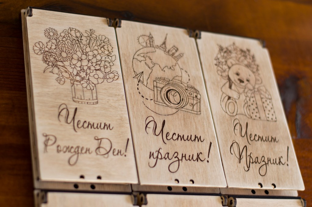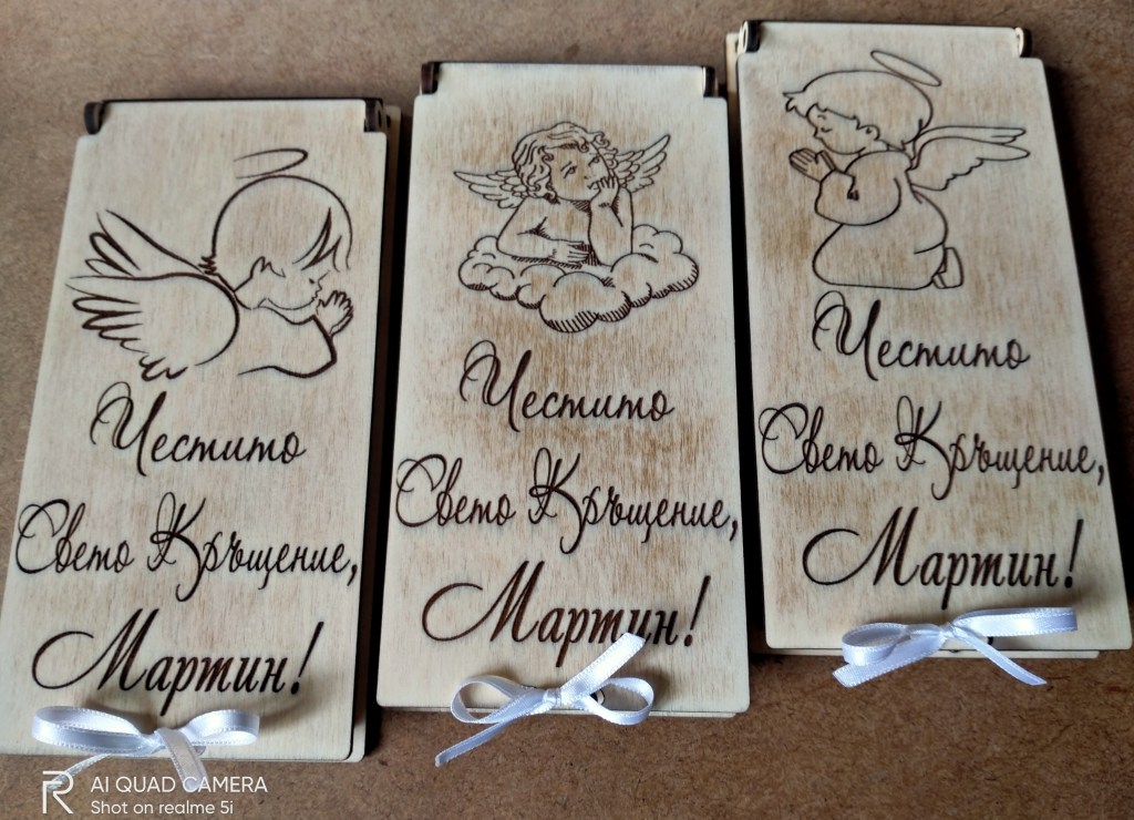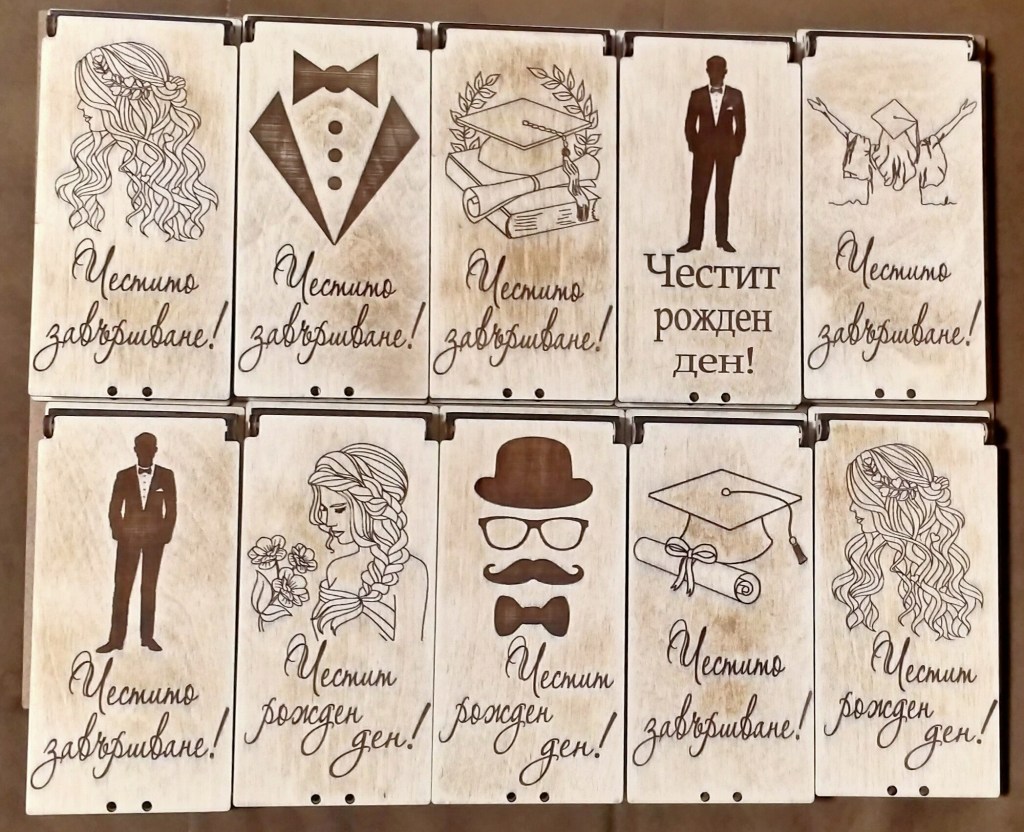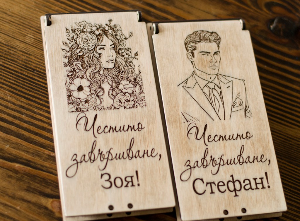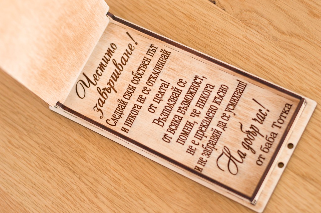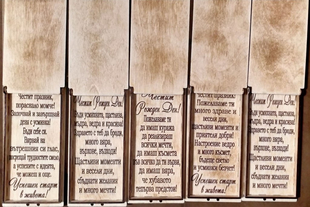 Персонализирана дървена кутийка (плик) за пари, лазерно гравирана.