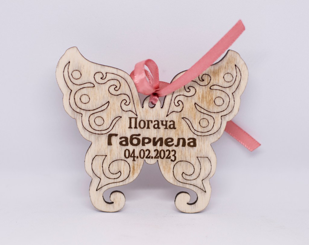 Дървено подаръче пеперудка, лазерно гравиранo.