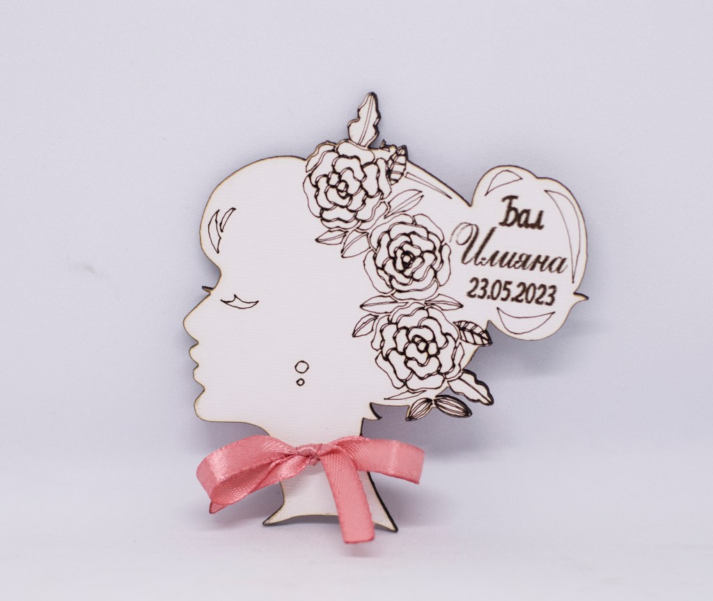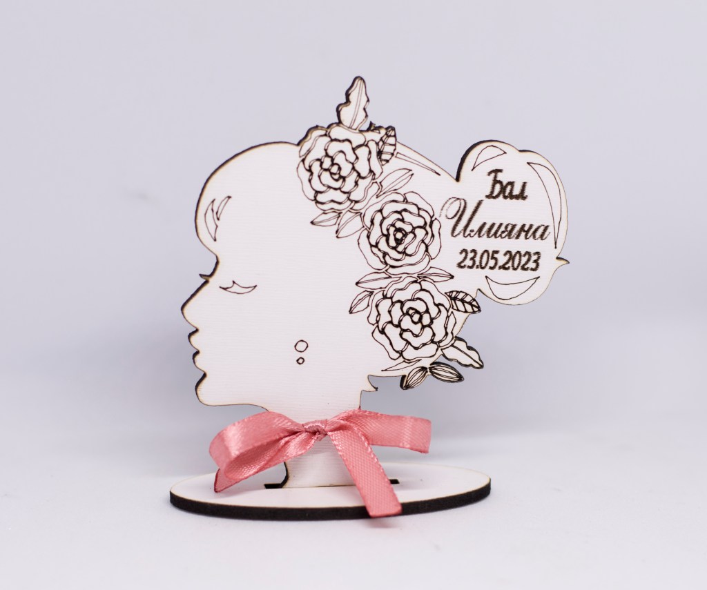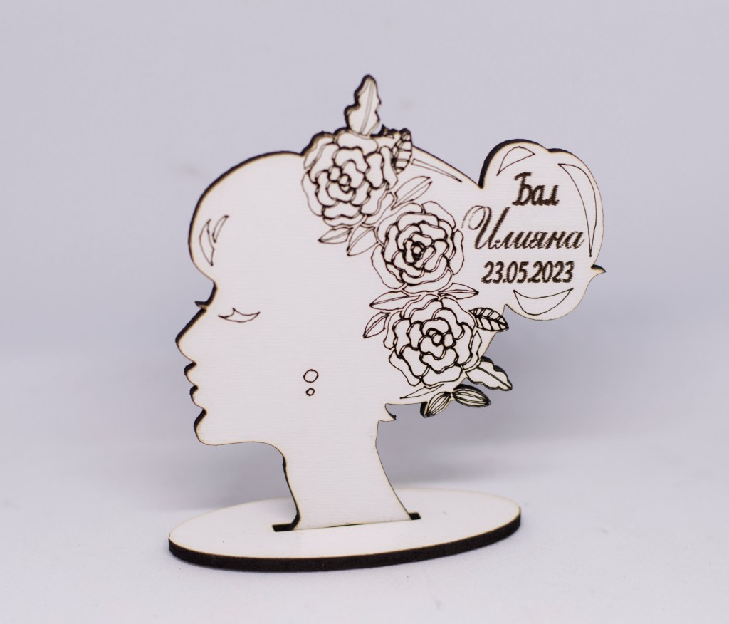 Дървено подаръче женски профил, лазерно гравиранo.