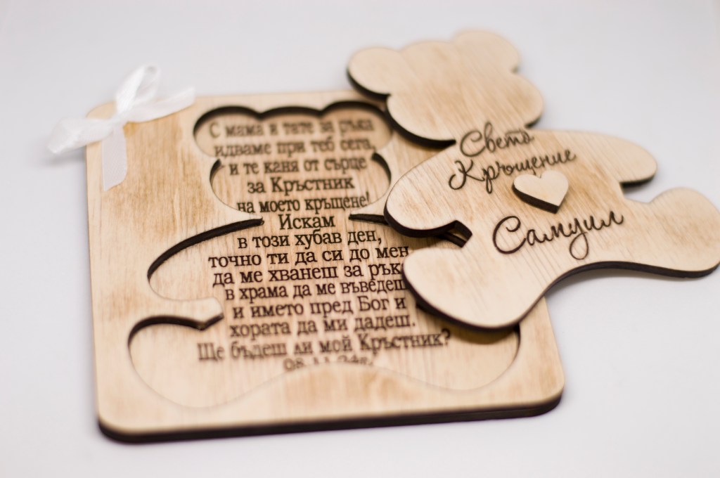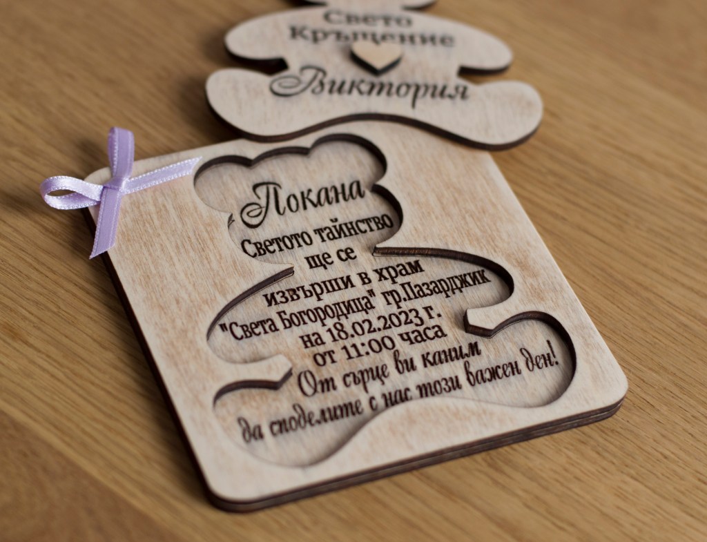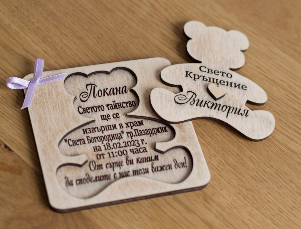 Персонализирани дървени покани, лазерно гравирани.