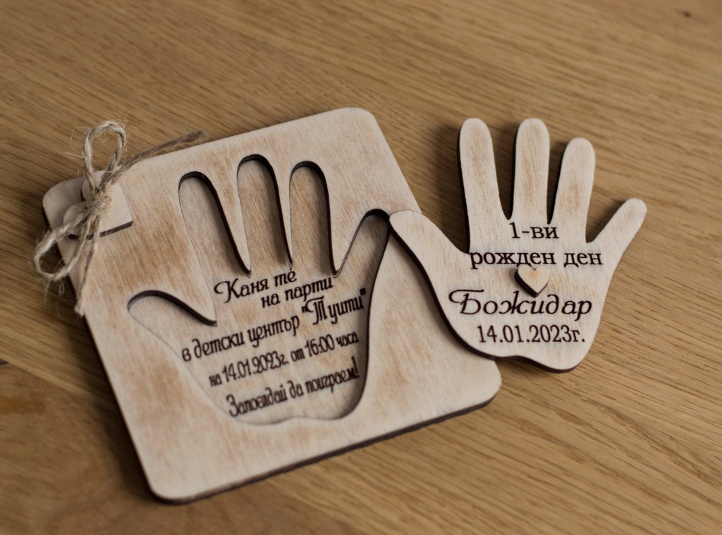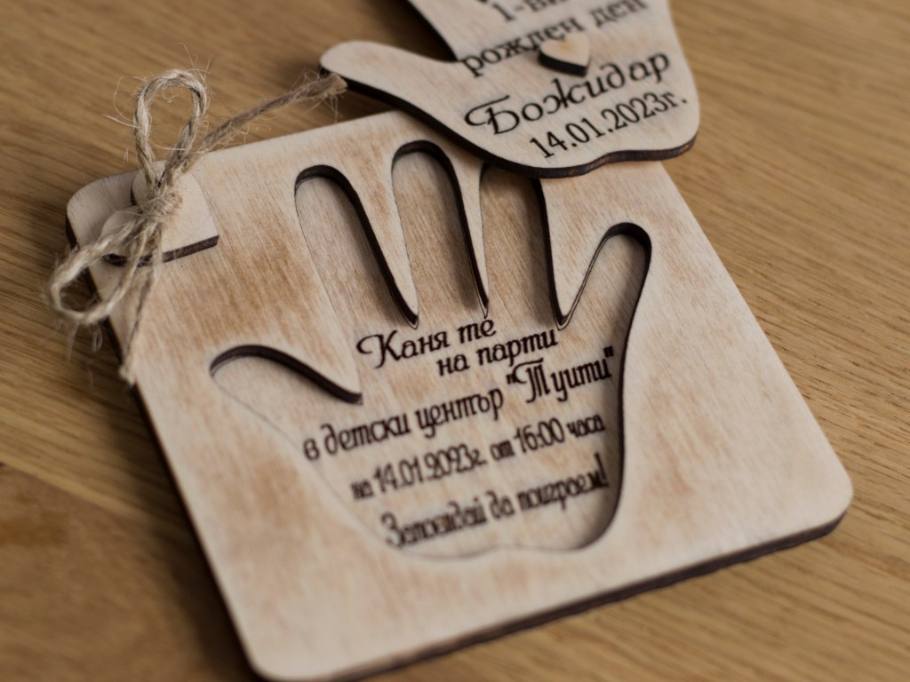 Интересна покана за гостите на вашето тържество. Могат да бъдат гравирани с текст по ваше желание, с шрифт по избор.