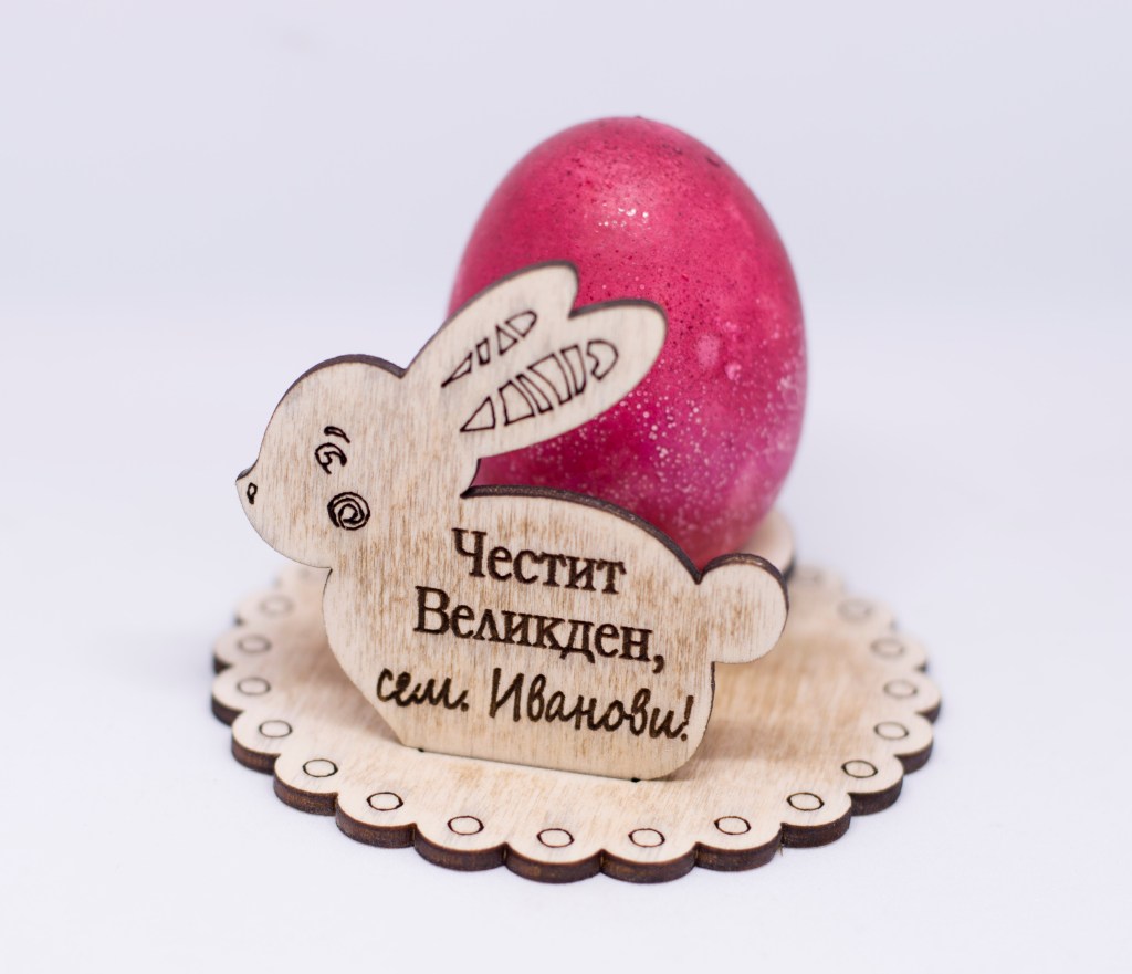 Персонализирана поставка за яйце за Великден. Mоже да бъде гравирана с име и/или текст по ваше желание, с шрифт по избор.
