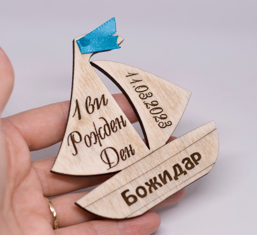 Персонализирано подаръче за гостите на вашето тържество, подходящи за рожден ден, погача, кръщене и др. Mоже да бъде гравиран с текст по ваше желание, с шрифт по избор. Цветът на панделката е по избор.