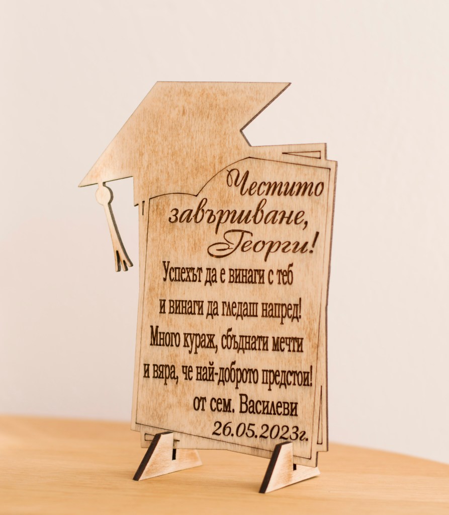 Персонализиран подарък за абитуриент, абсолвент и др. Mоже да бъде гравиран с текст по ваше желание, с шрифт по избор.