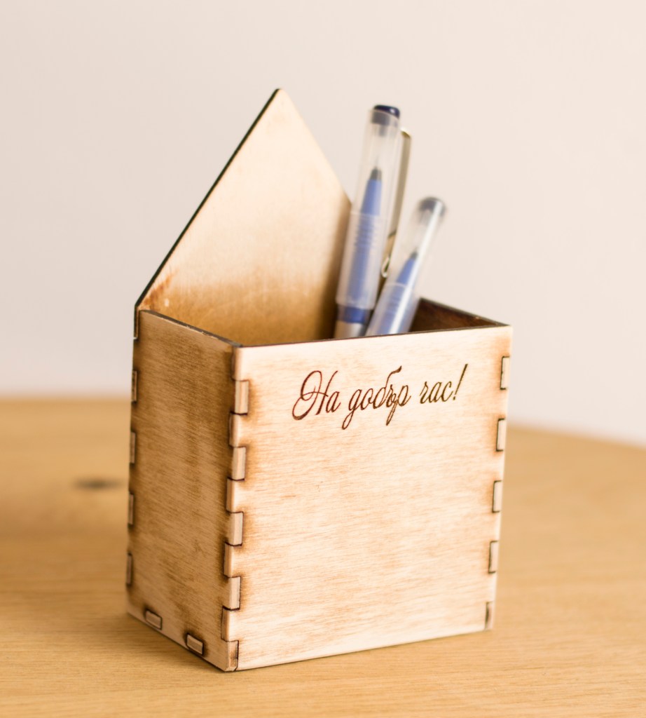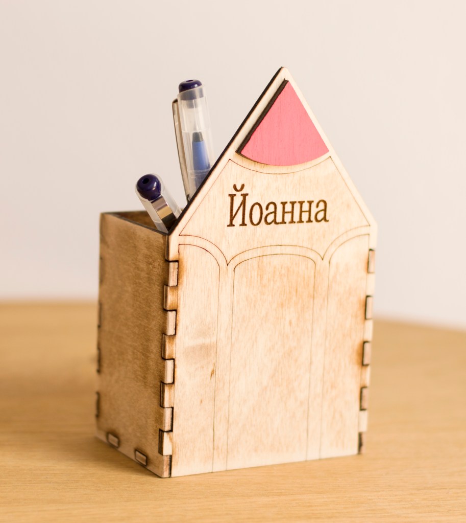 Personalized pencil holder suitable for young and old students. The color of the tip of the pencil is optional. It can be engraved with a text at your request, you can choose the font.