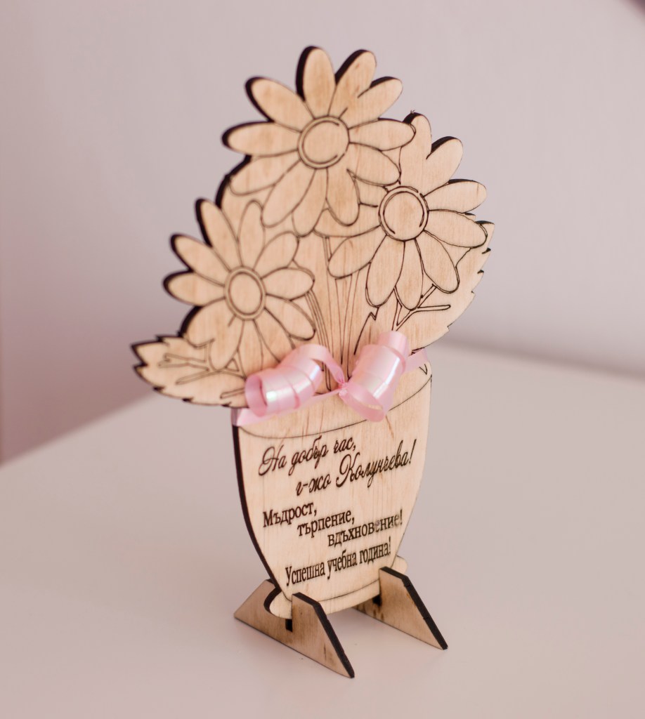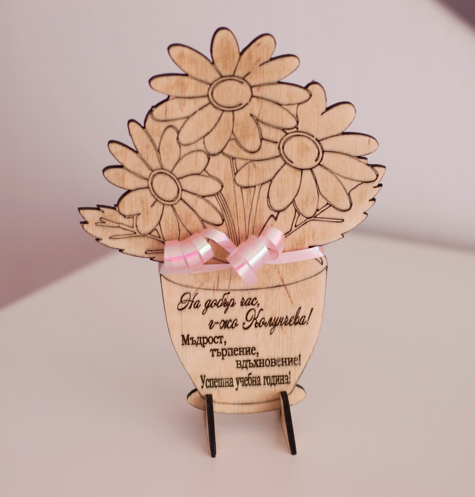 Персонализиран букет, подходящ за подарък на любим човек или за учител. Mоже да бъде гравиран с текст по ваше желание, с шрифт по избор.