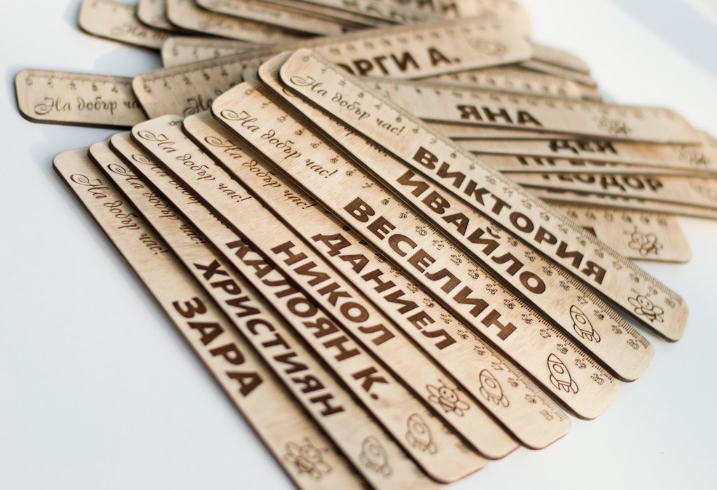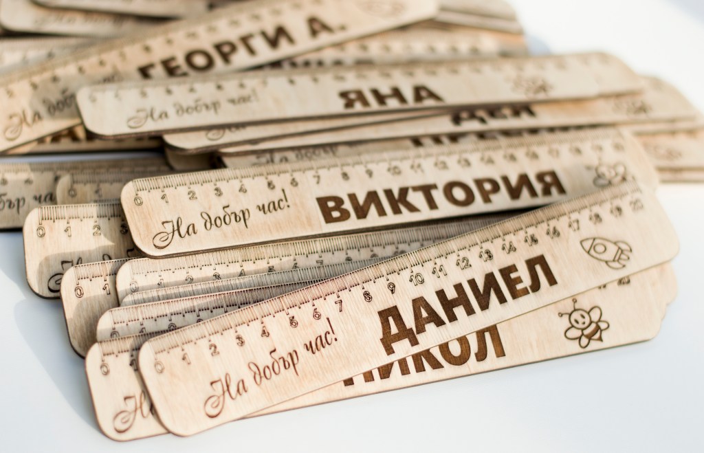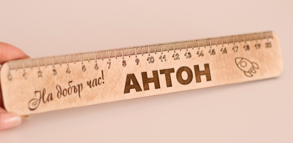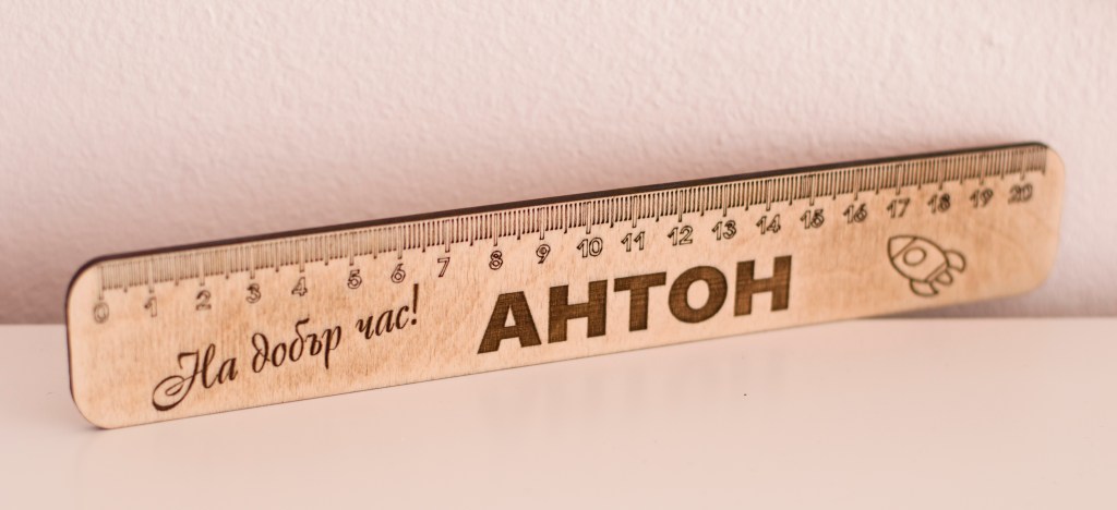 Персонализиранa линийка, подходящ за малки и големи ученици. Mоже да бъде гравирана с текст по ваше желание, с шрифт по избор.