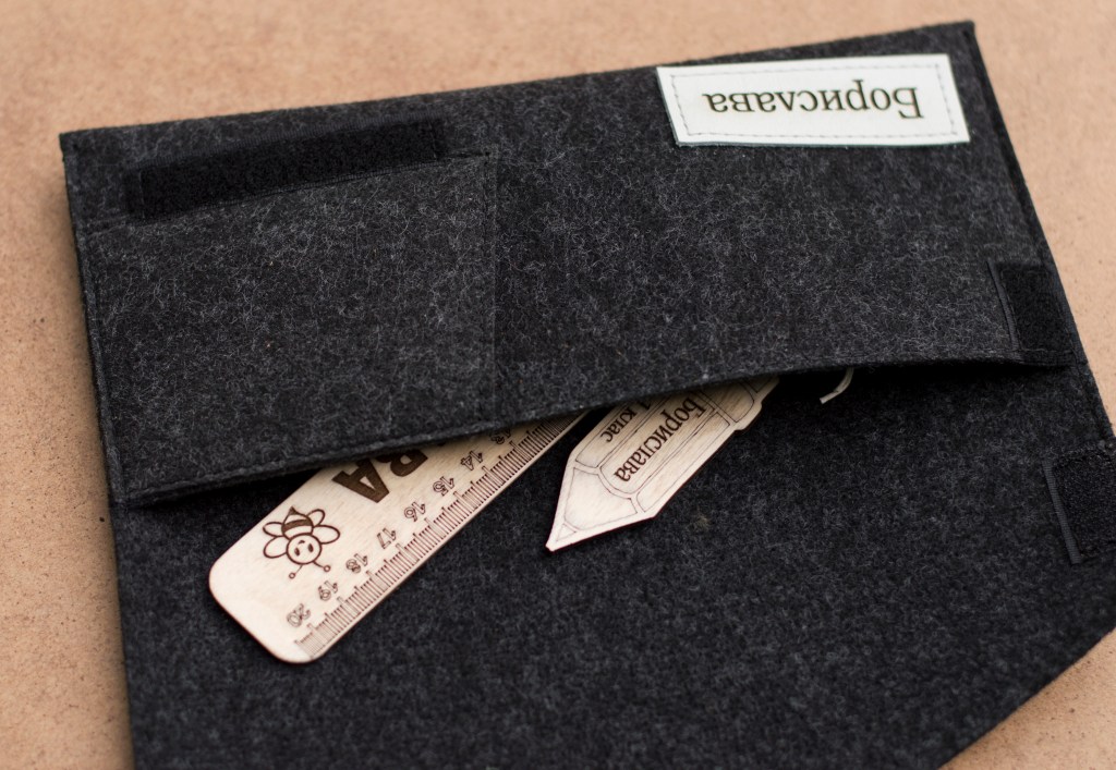 Personalized set, suitable as a gift for students. The case bag has a small pocket and closes with Velcro. It can be engraved with a text at your request, you can choose the font.