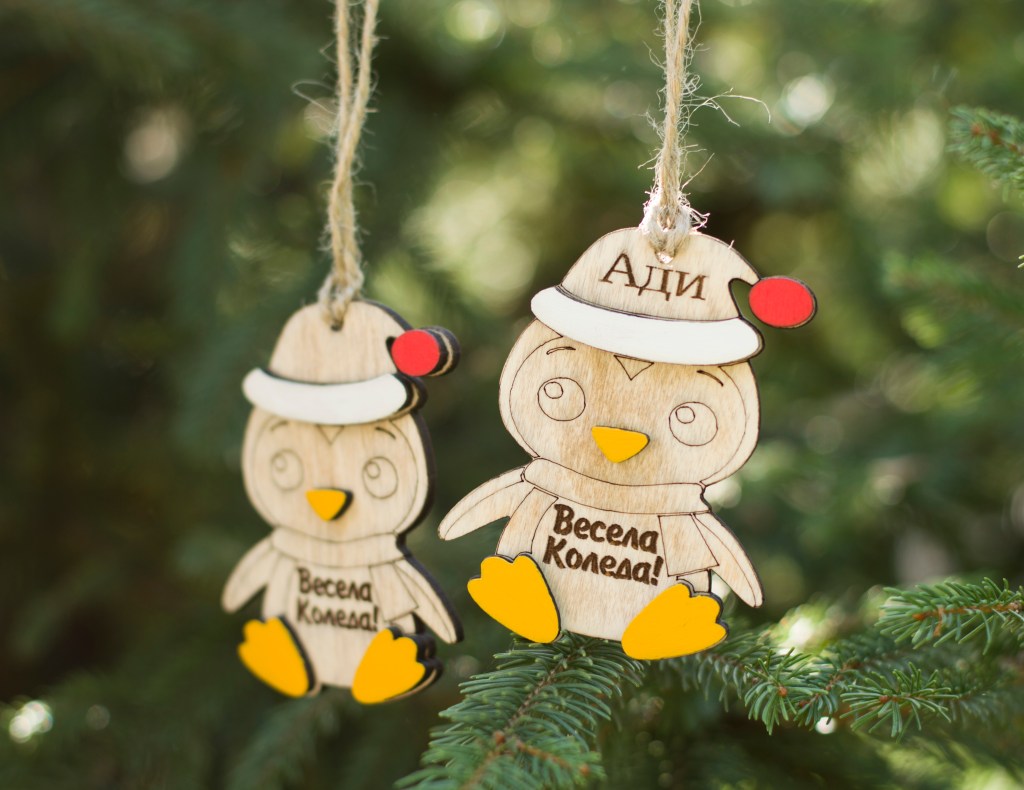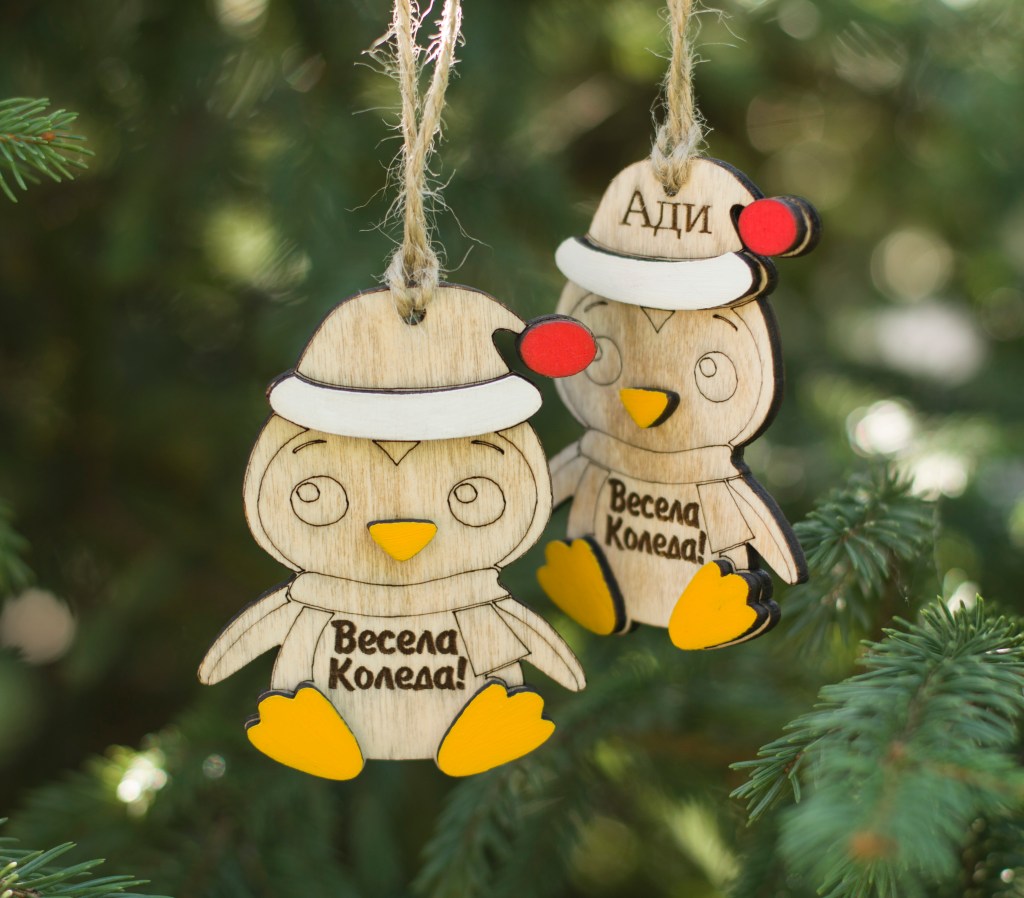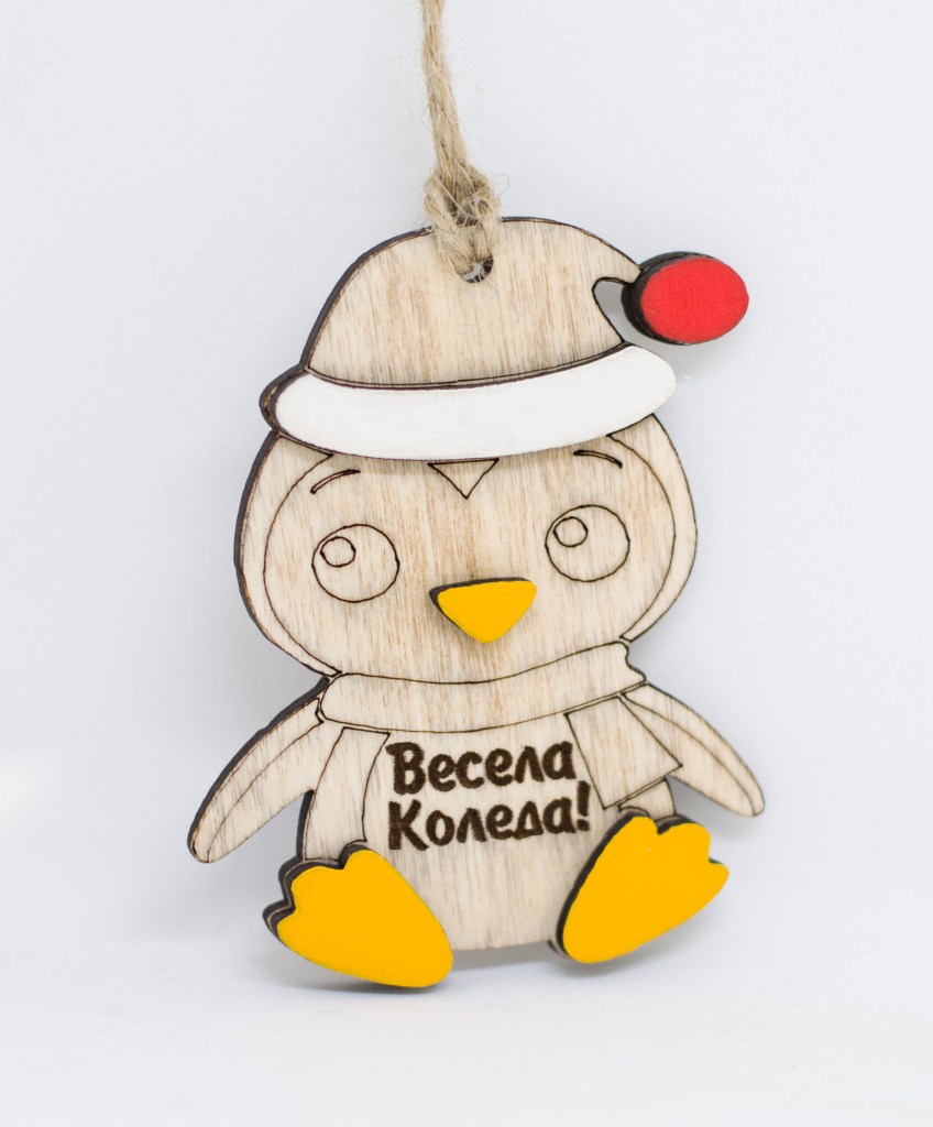 Персонализирана Коледна играчка пингвинче, лазерно гравирана.