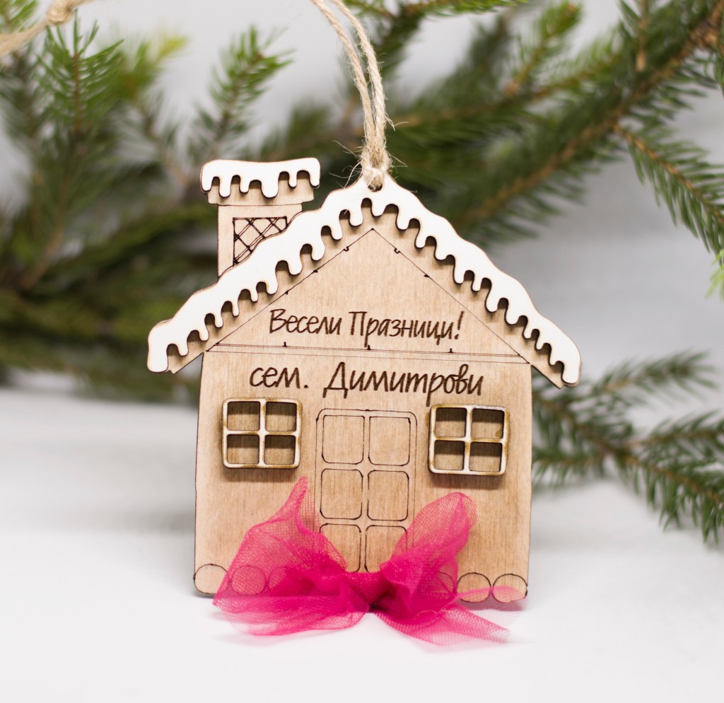 Персонализирана Коледна играчка ,,Снежна къщичка“, лазерно гравирана.