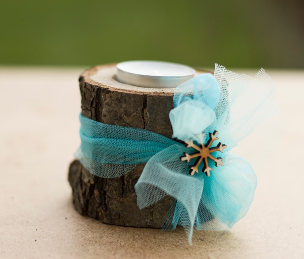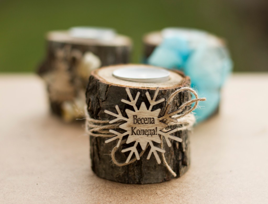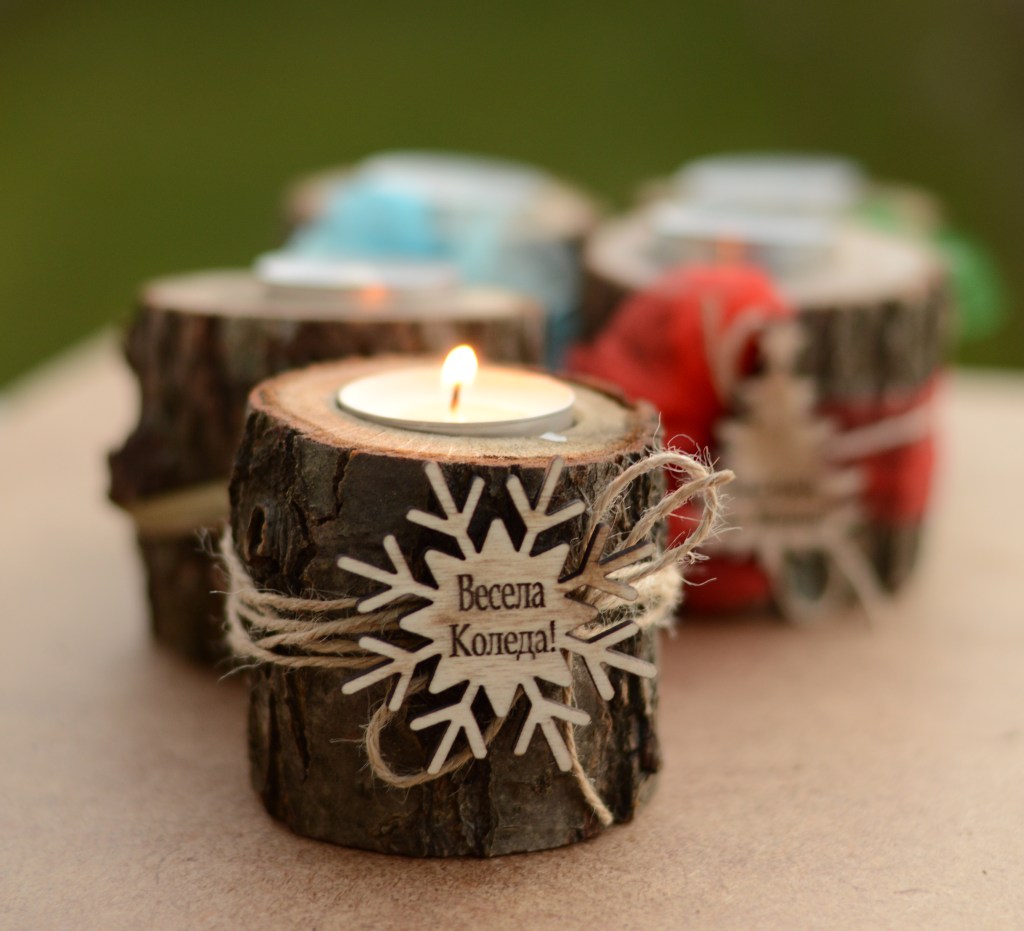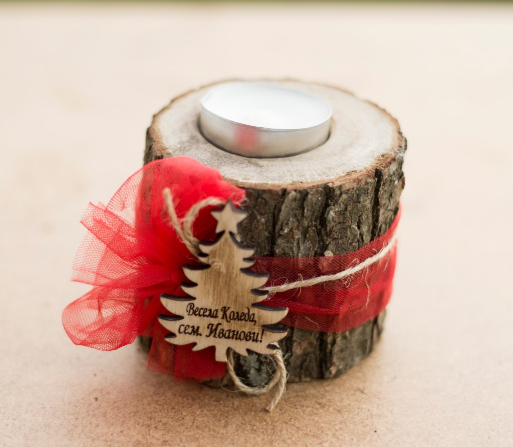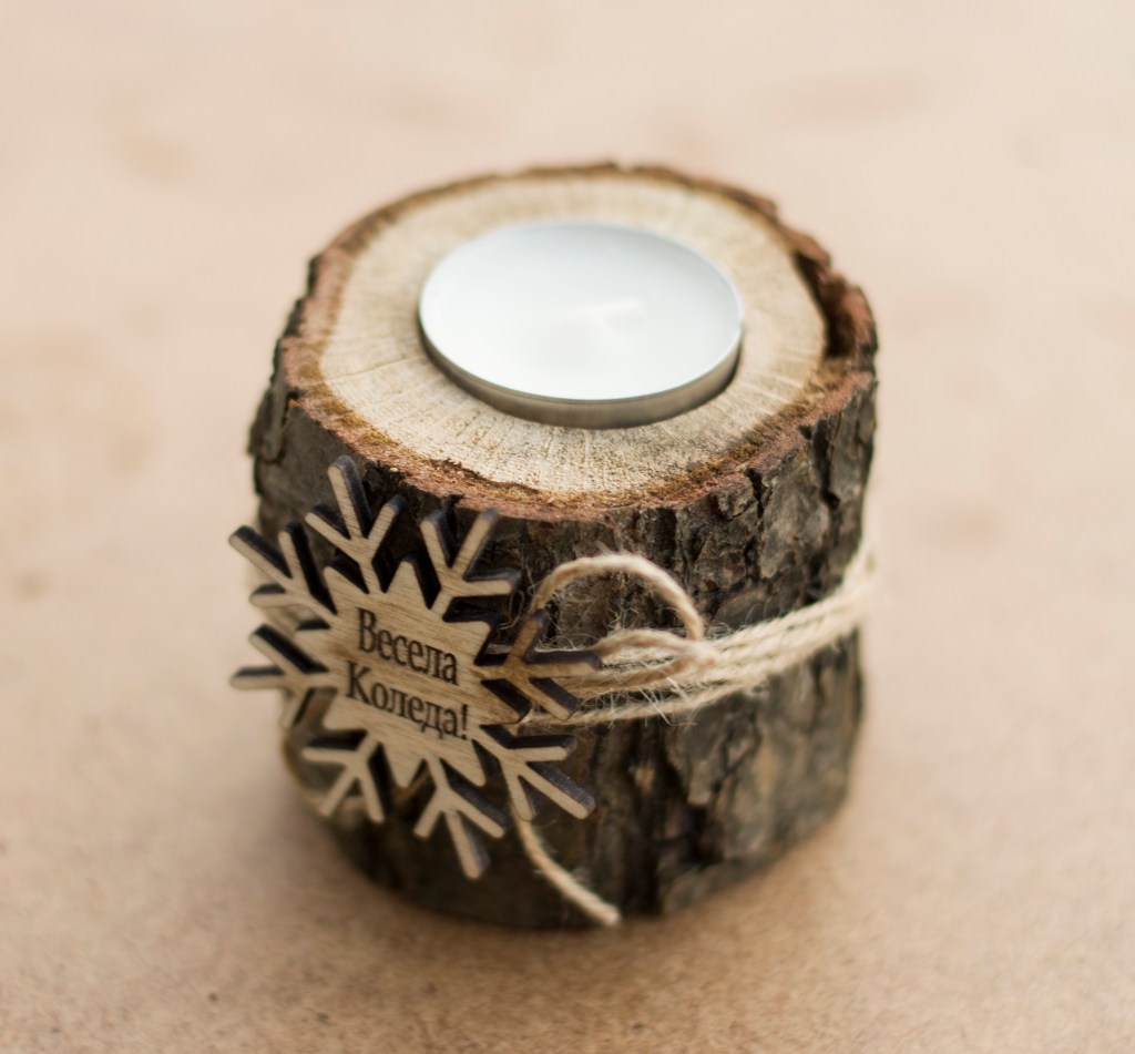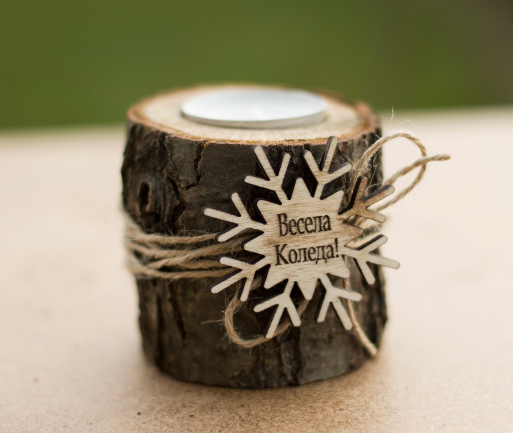 Коледна поставка за чаена свещ, лазерно гравирана.