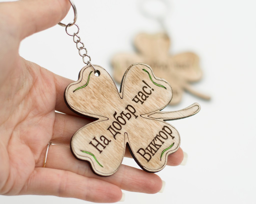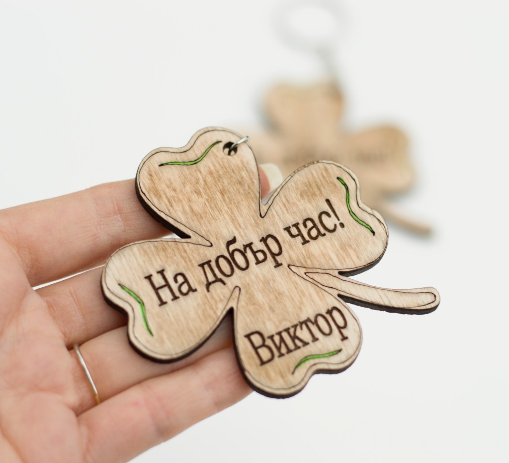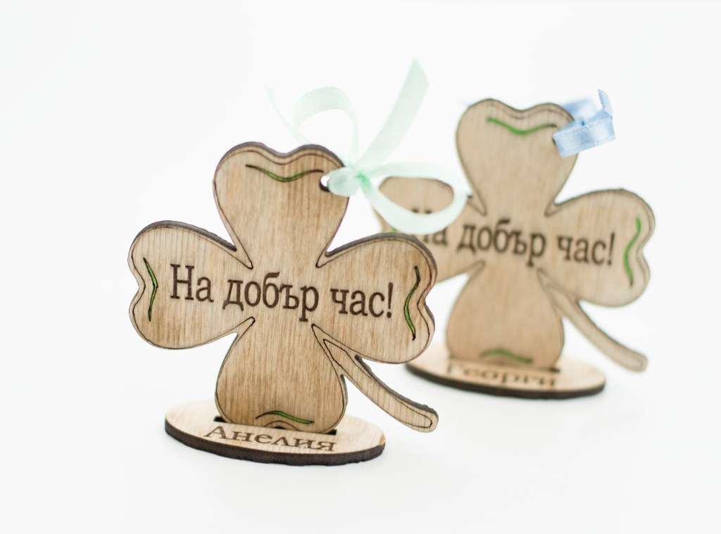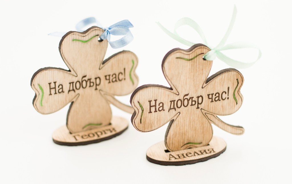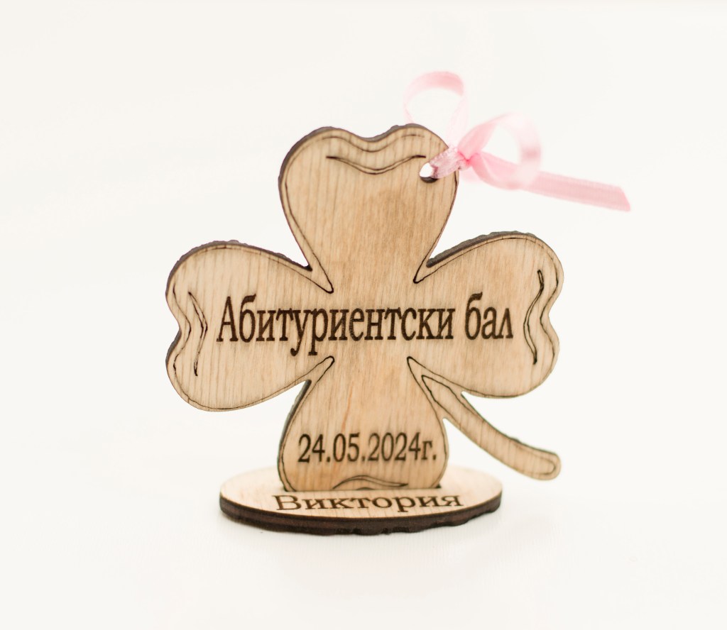 Дървено подаръче детелинка, лазерно гравиранo.