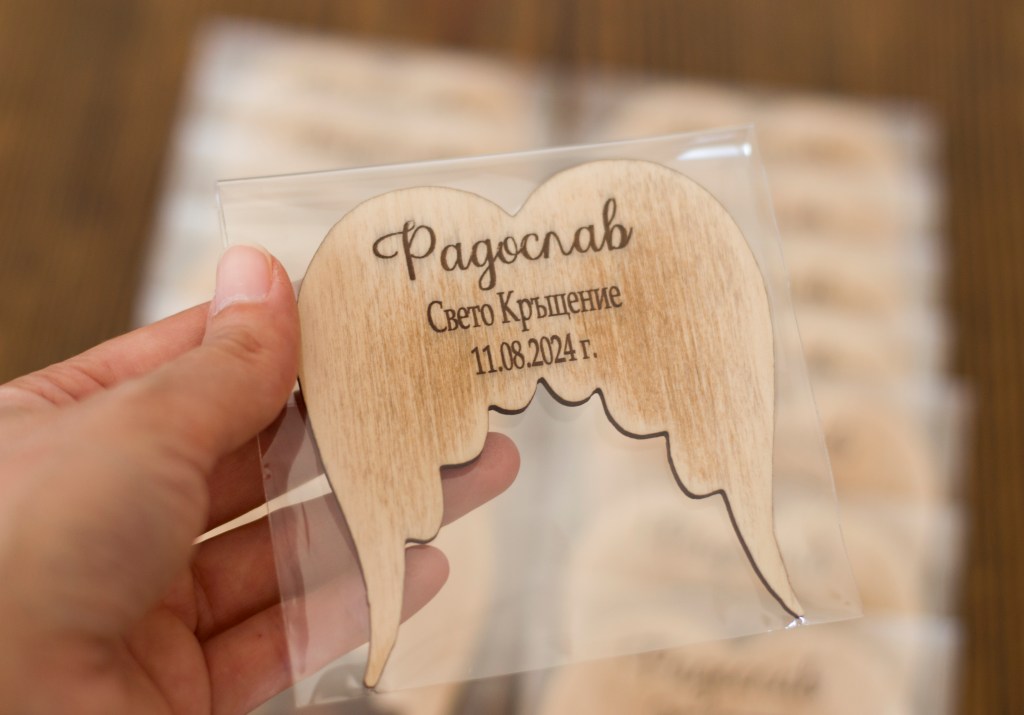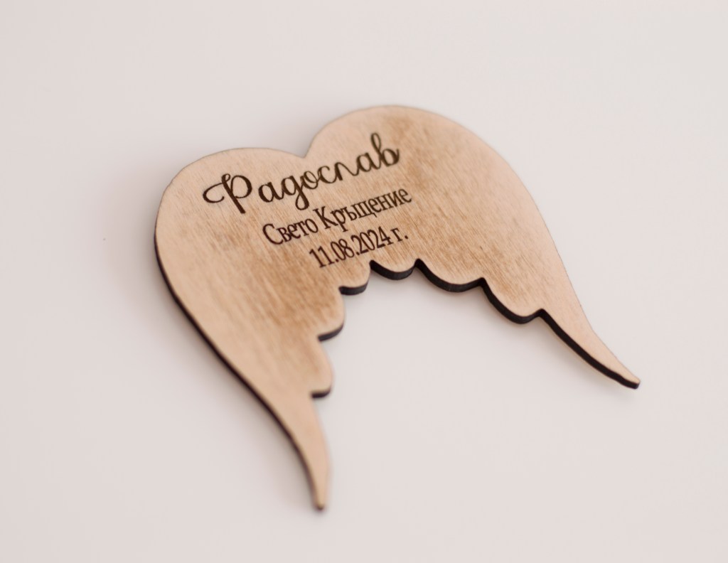 Дървено подаръче Ангелски крила, лазерно гравиранo.