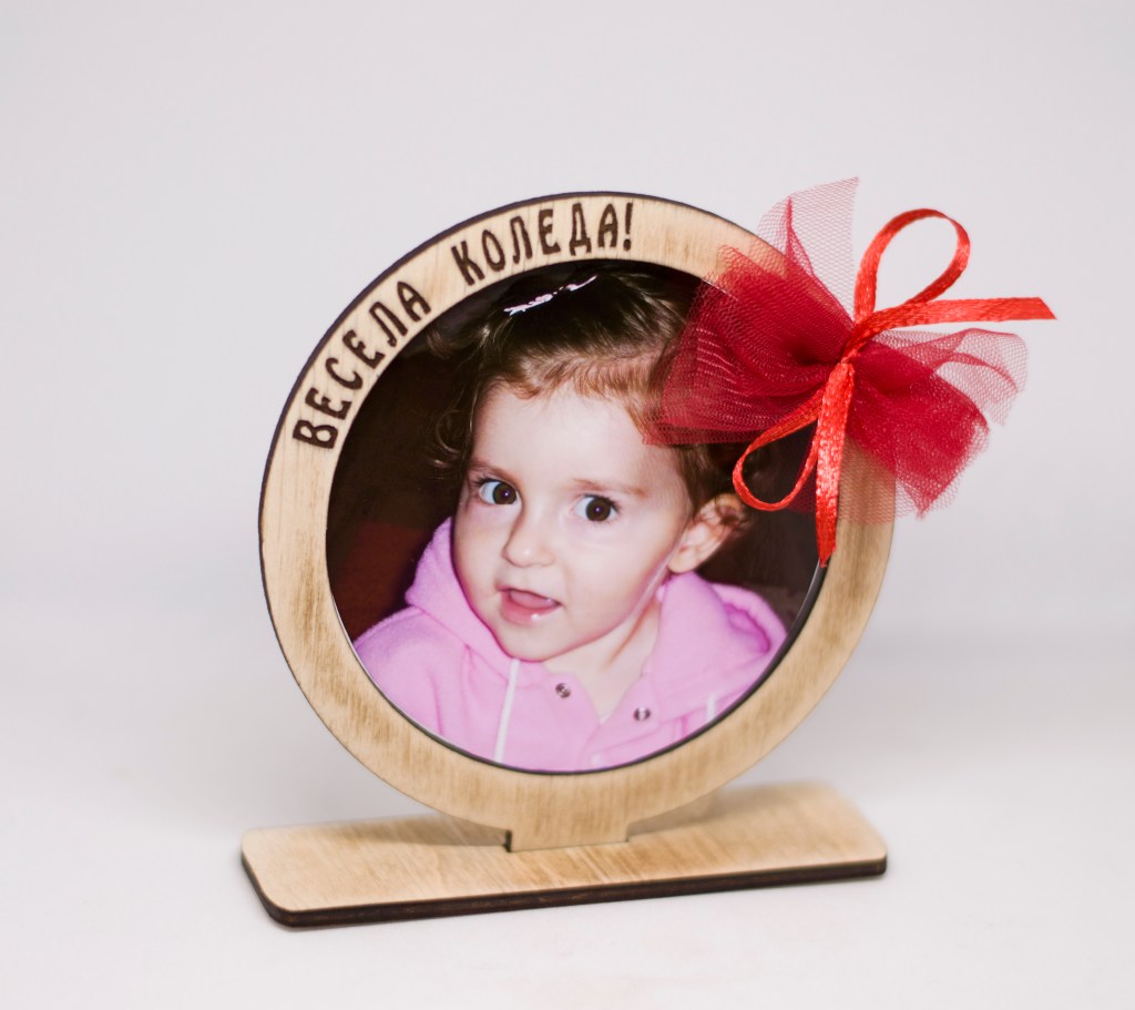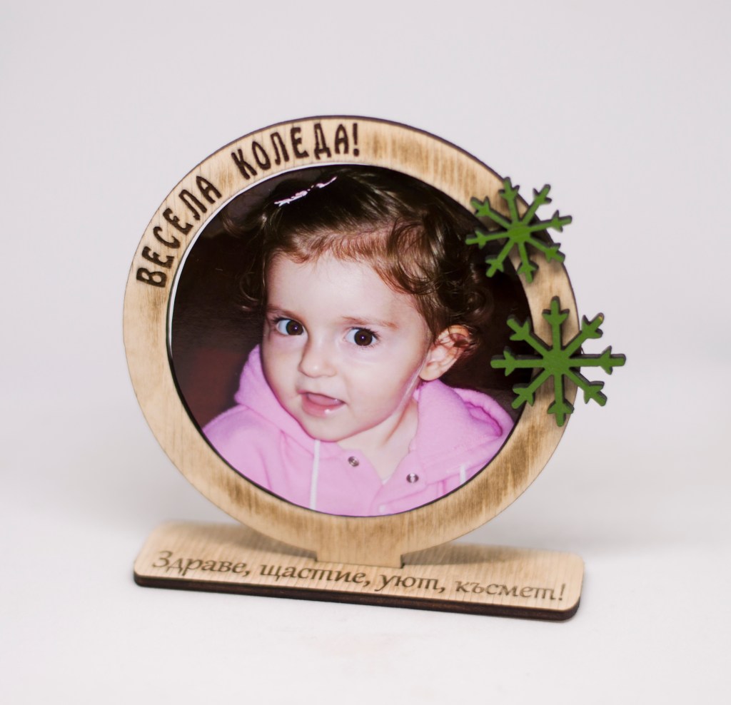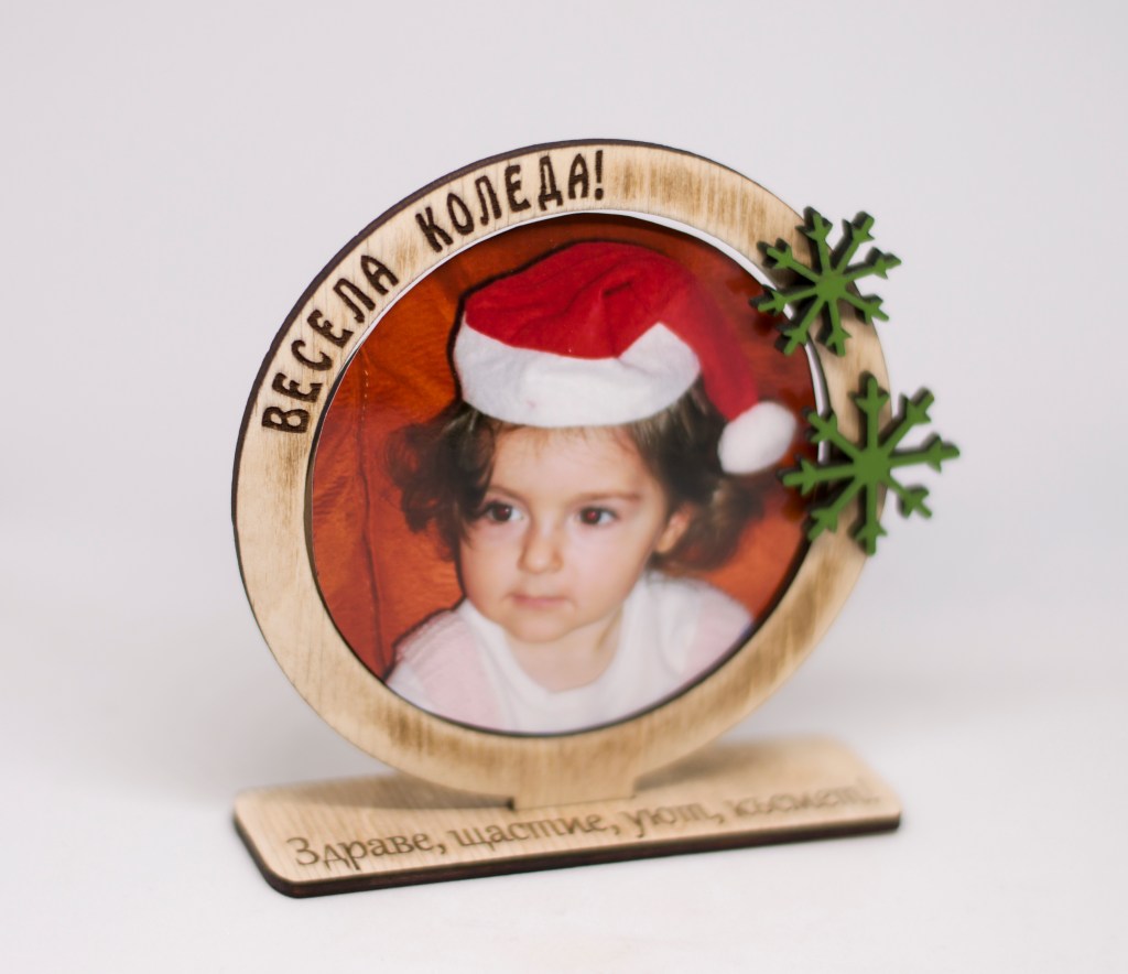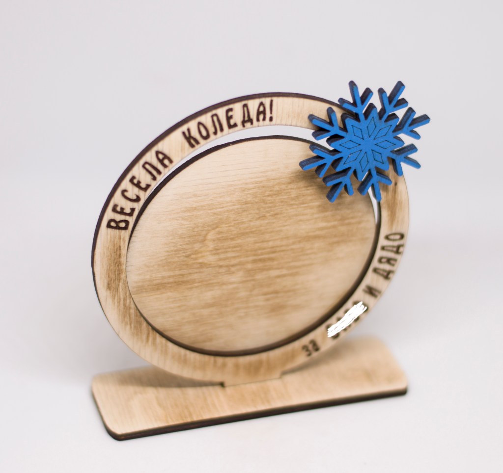 Персонализирана коледна кръгла рамка за снимка, лазерно гравирана.