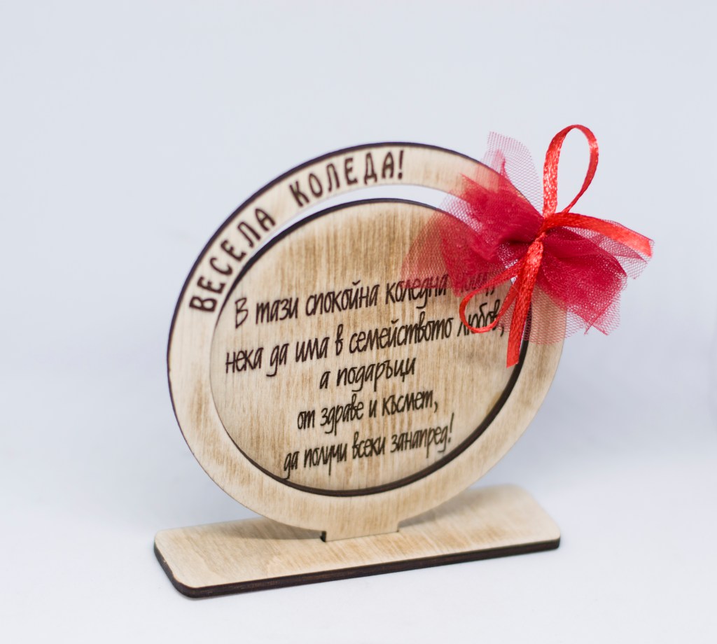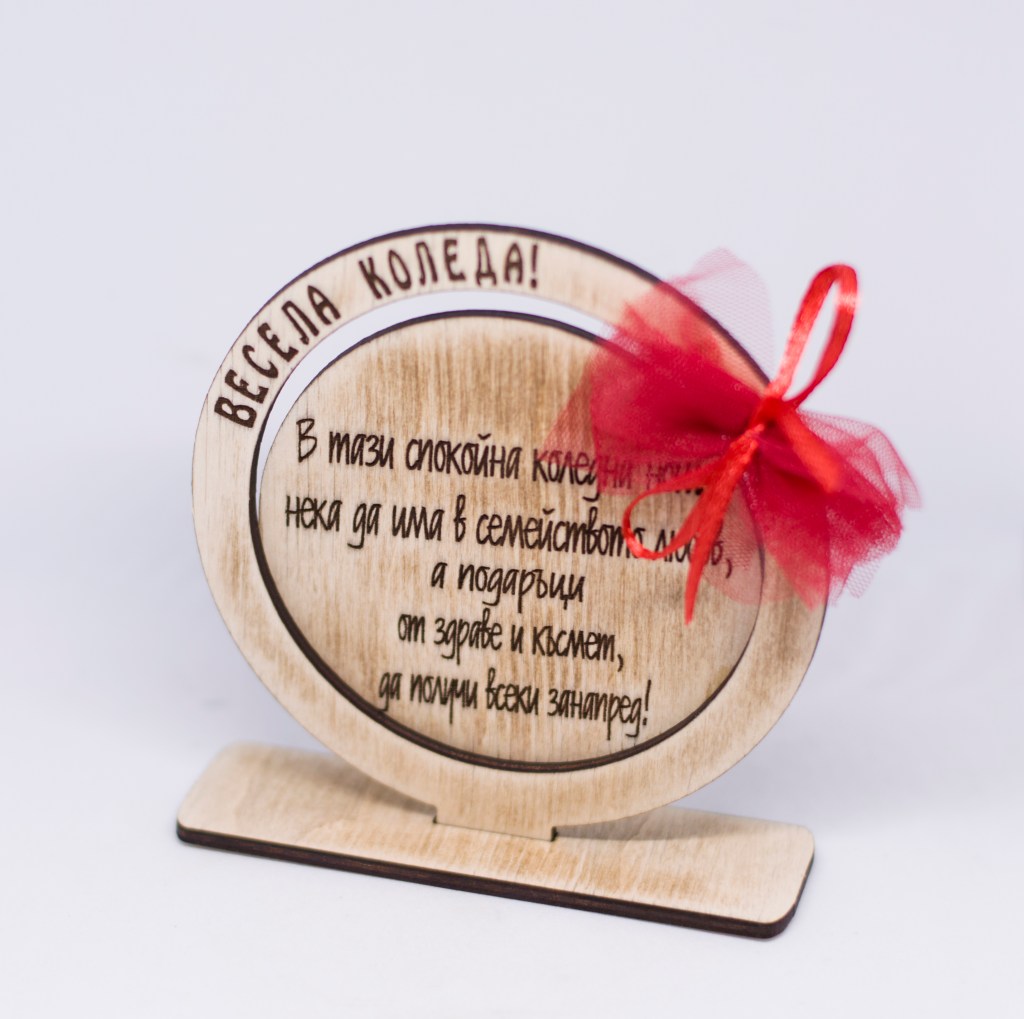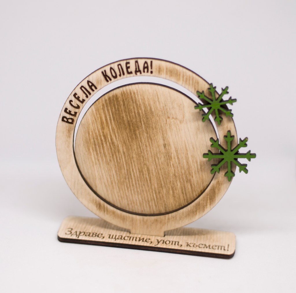 Персонализирана коледна кръгла рамка за снимка, лазерно гравирана.
