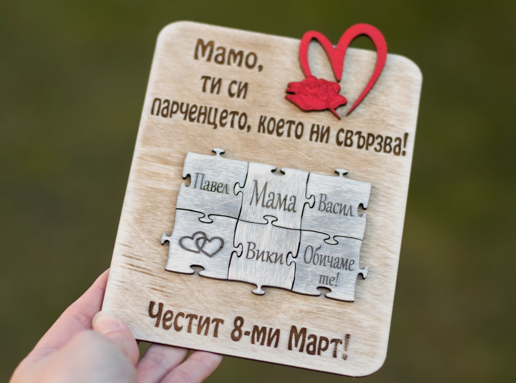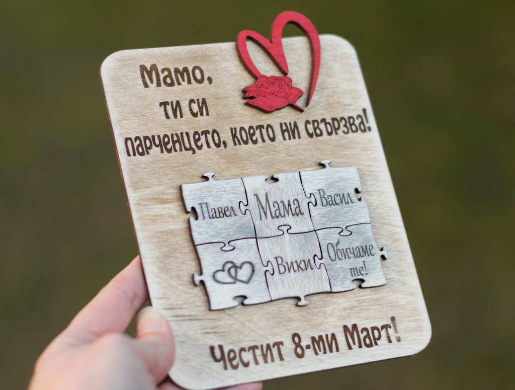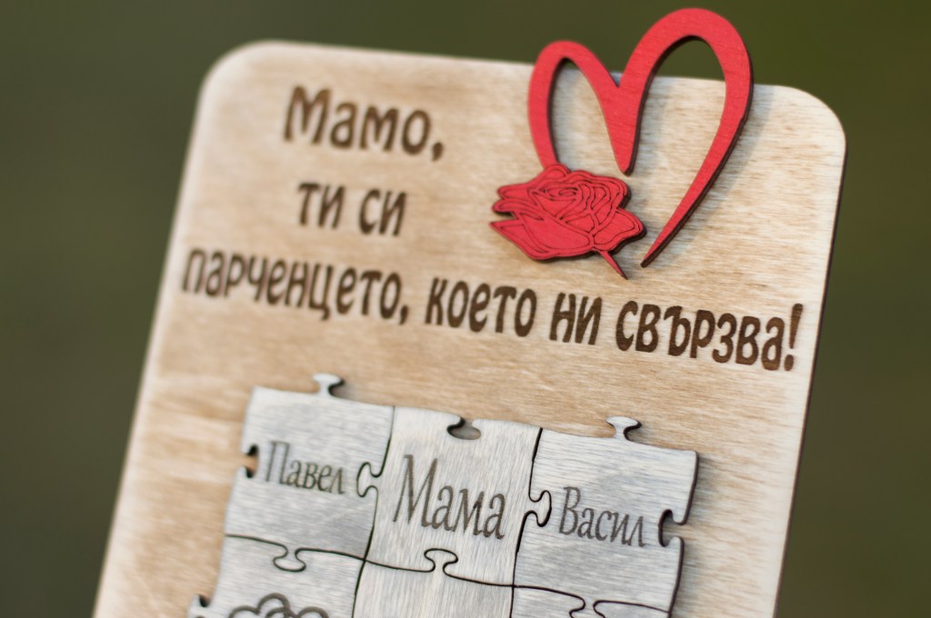 Дървена персонализирана картичка-пано с послание, лазерно гравирана.