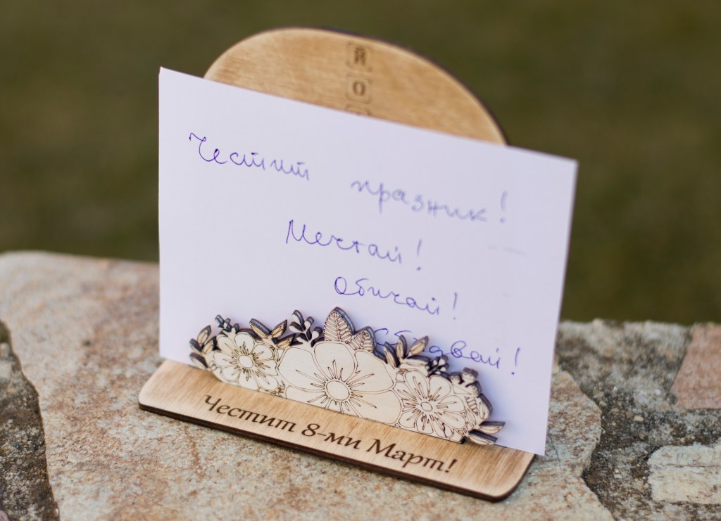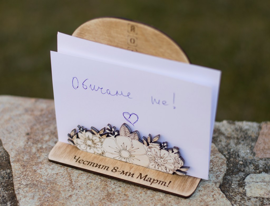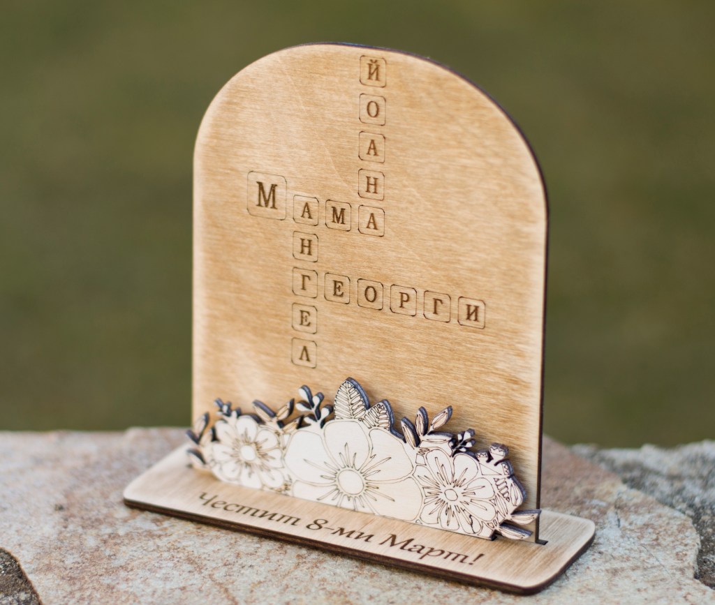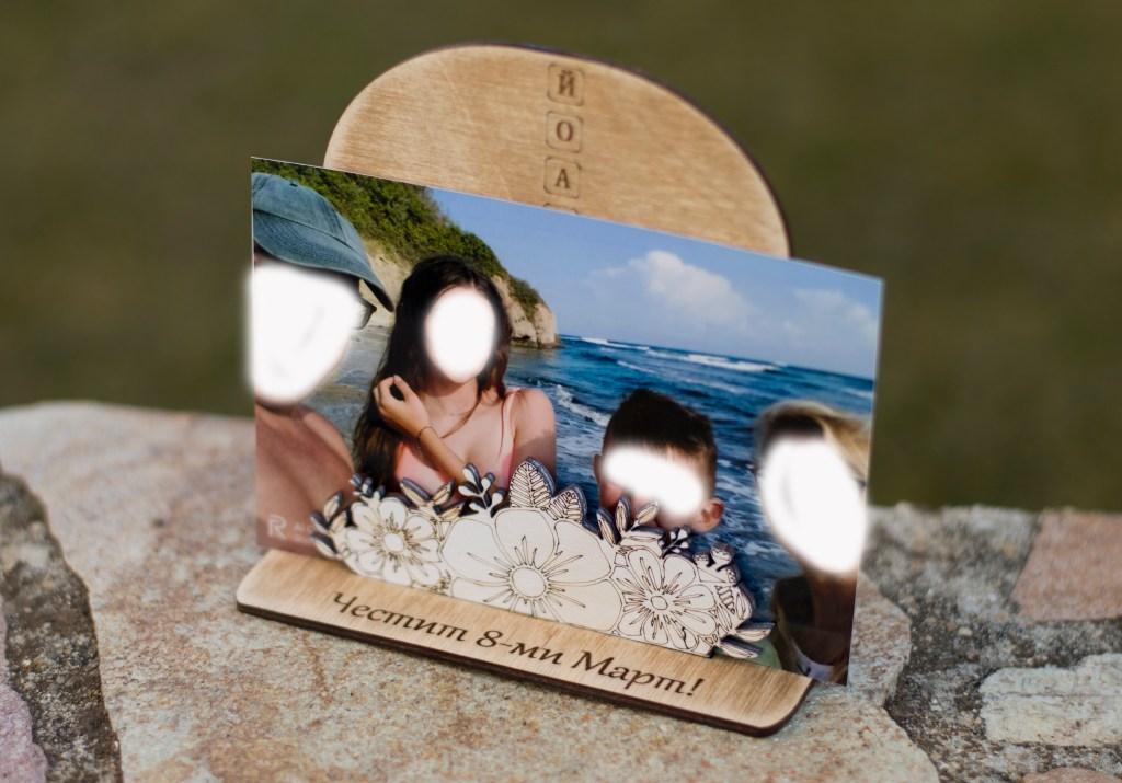 Симпатичен персонализиран подарък подходящ за Мама или любима дама. Поставката може да се използва за снимка, за картичка или за кратко мило послание. Може да бъде гравирана с текст по ваше желание.